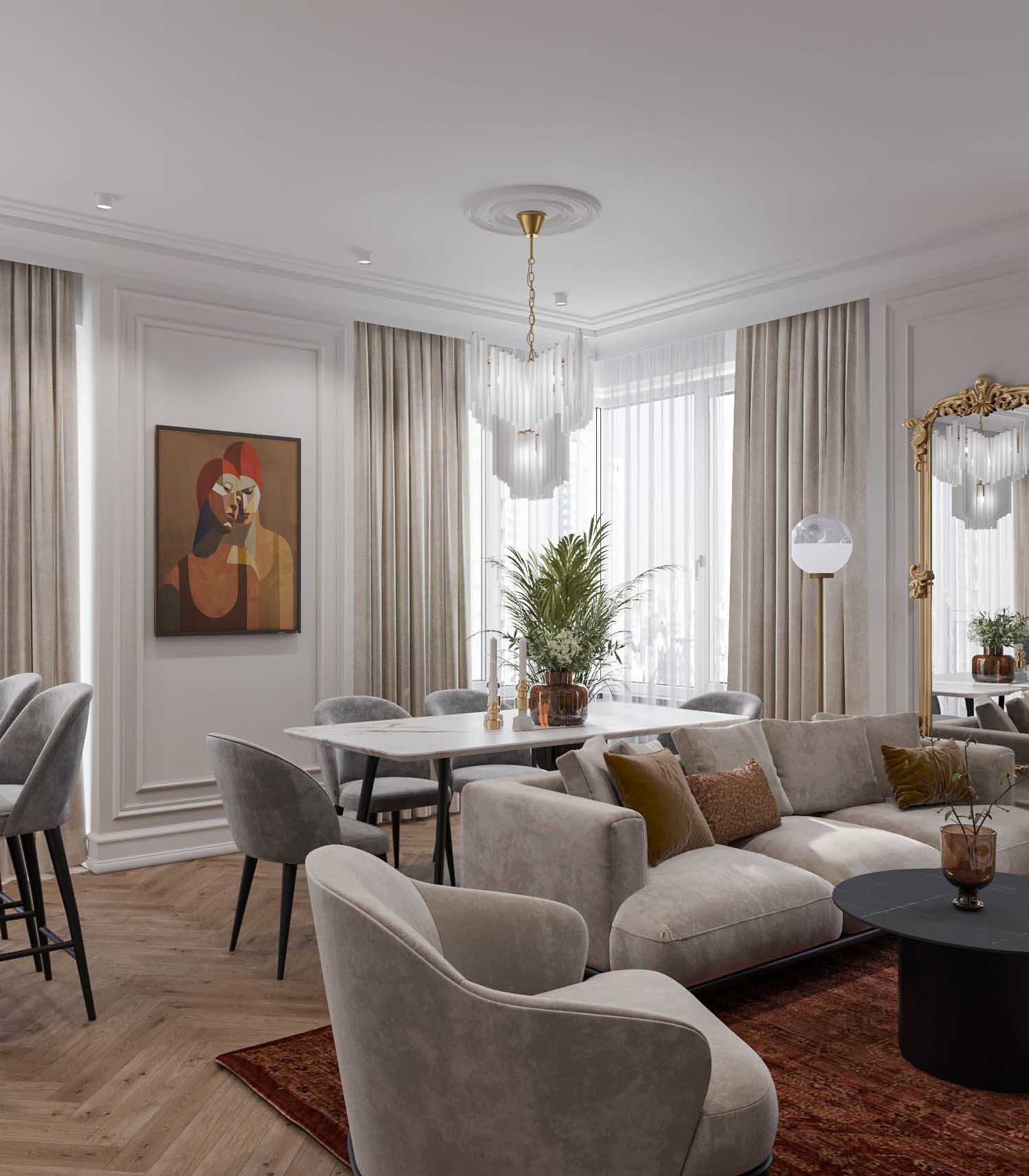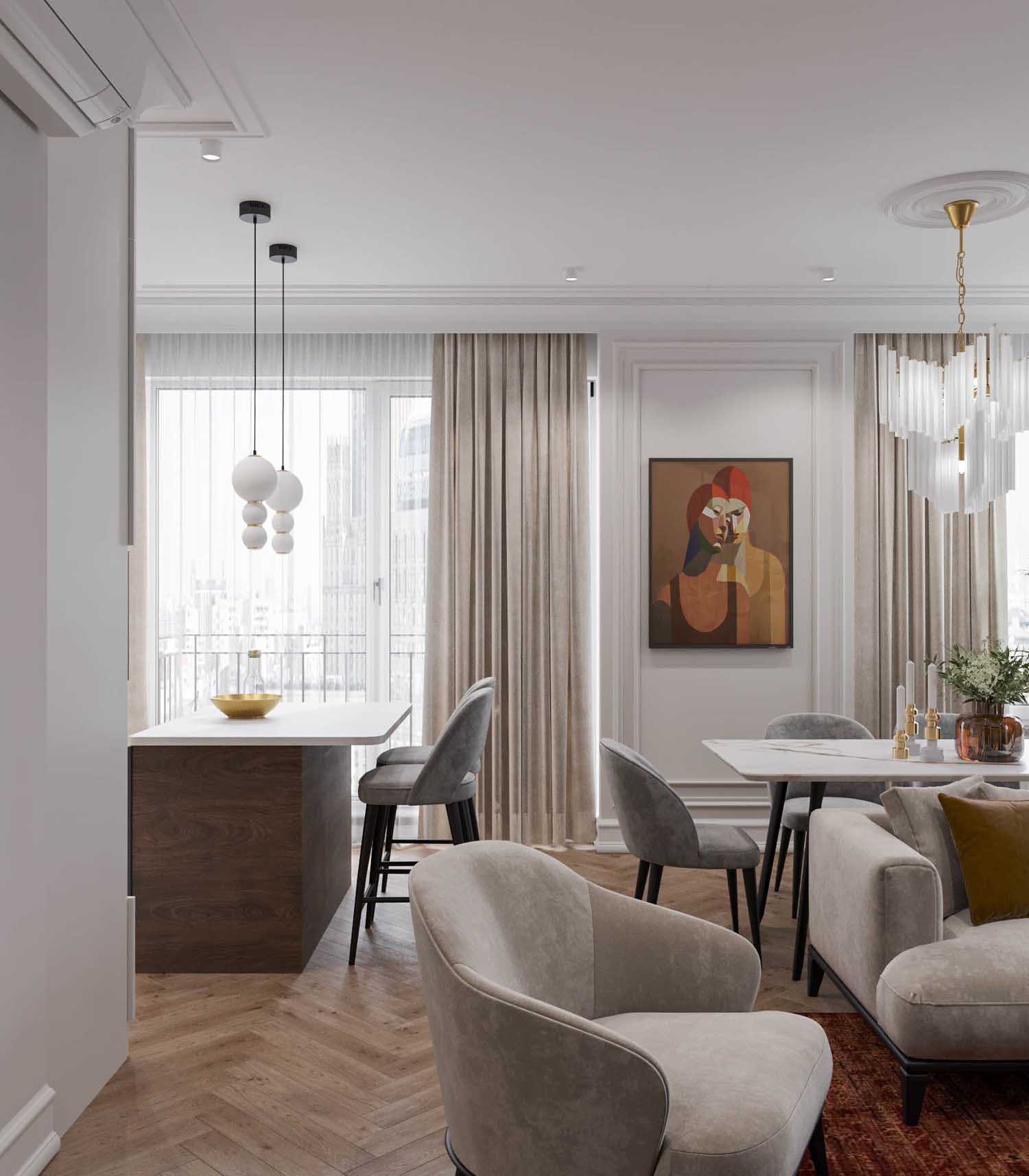 A lakás teljes felújítása során a tulajdonos hölgy ízlése érvényesült, az újjászületett enteriőrben az elegáns elképzelések következetes praktikummal párosulnak. A végeredmény egy olyan otthon lett, ahol a kifinomult esztétika a mindennapi használhatóságot szolgálja, tele inspiráló megoldásokkal.