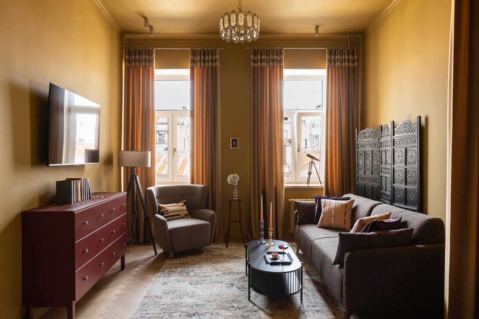 Hogyan lehet a múlt értékeit a jelennel ötvözni úgy, hogy az eredmény ne egy múzeum, hanem egy élettel teli, meleg otthon legyen? Ebben a belvárosi lakásban a tervező bátor színhasználattal és régi bútorokkal teremtett egyedi atmoszférát.