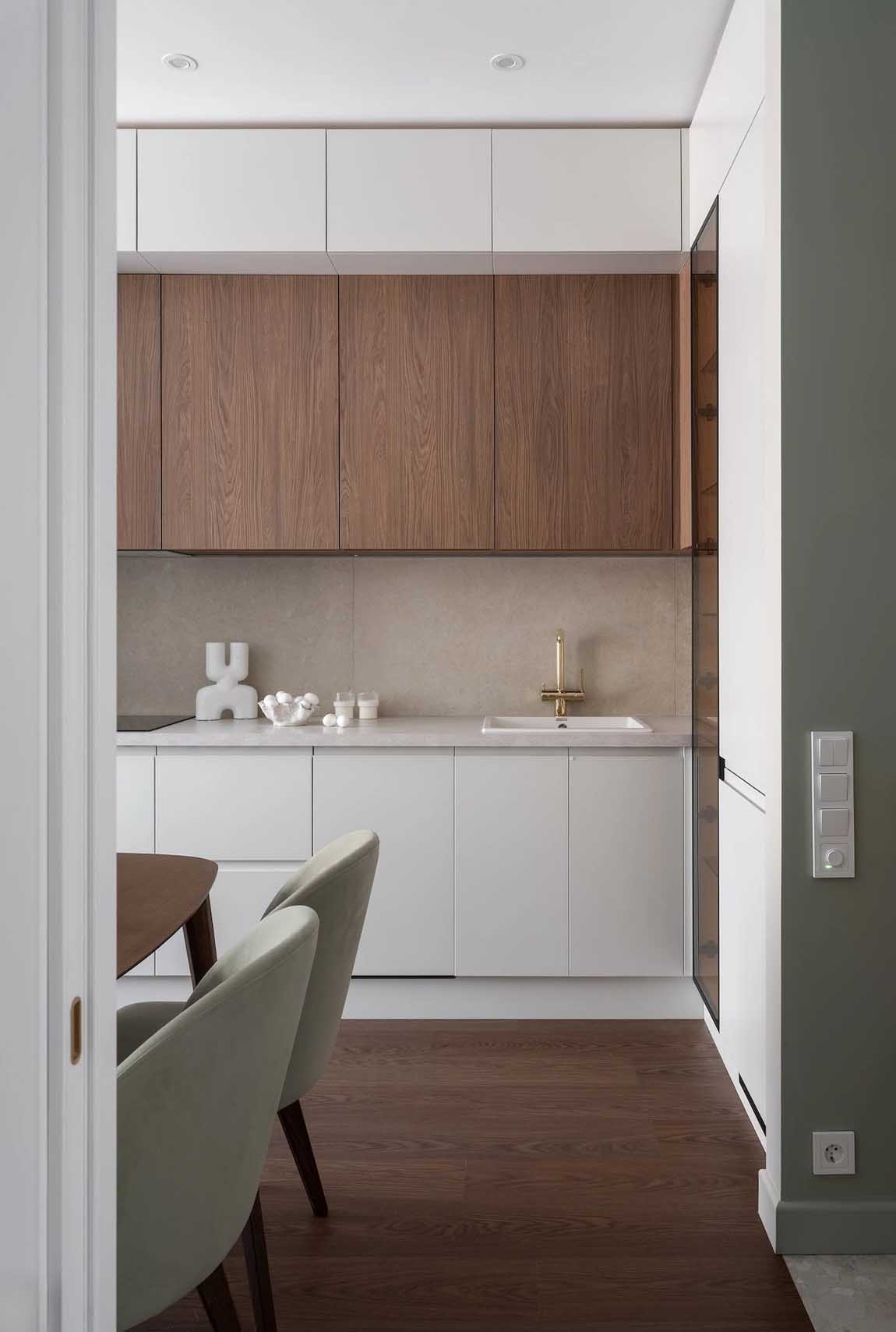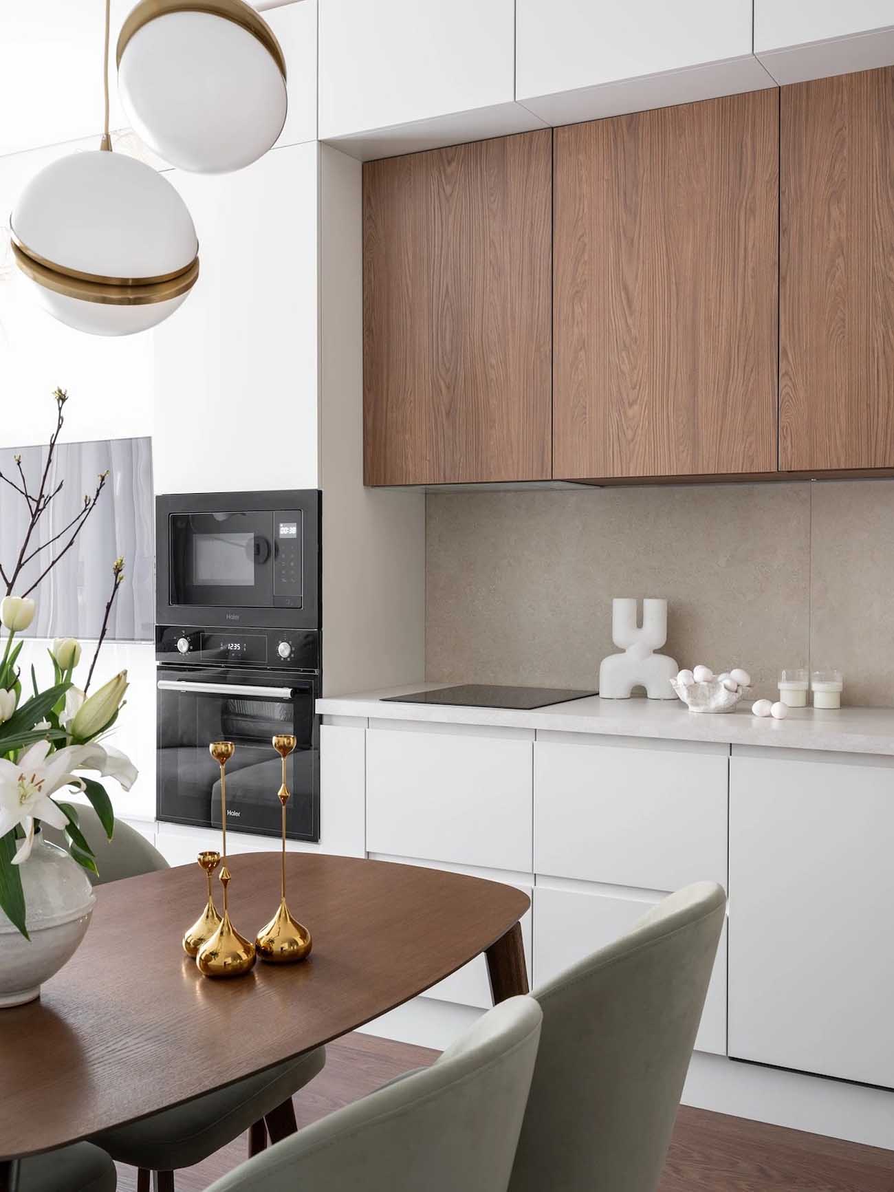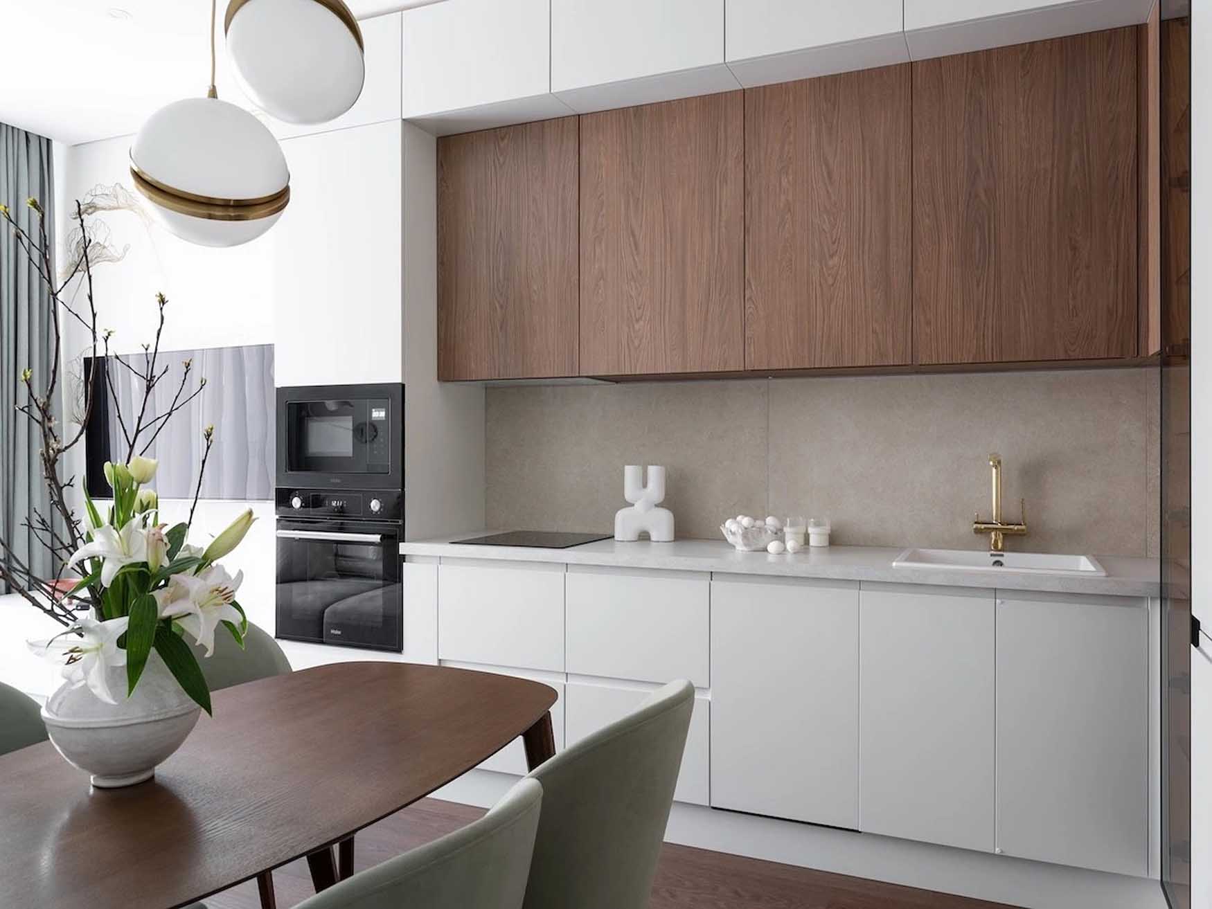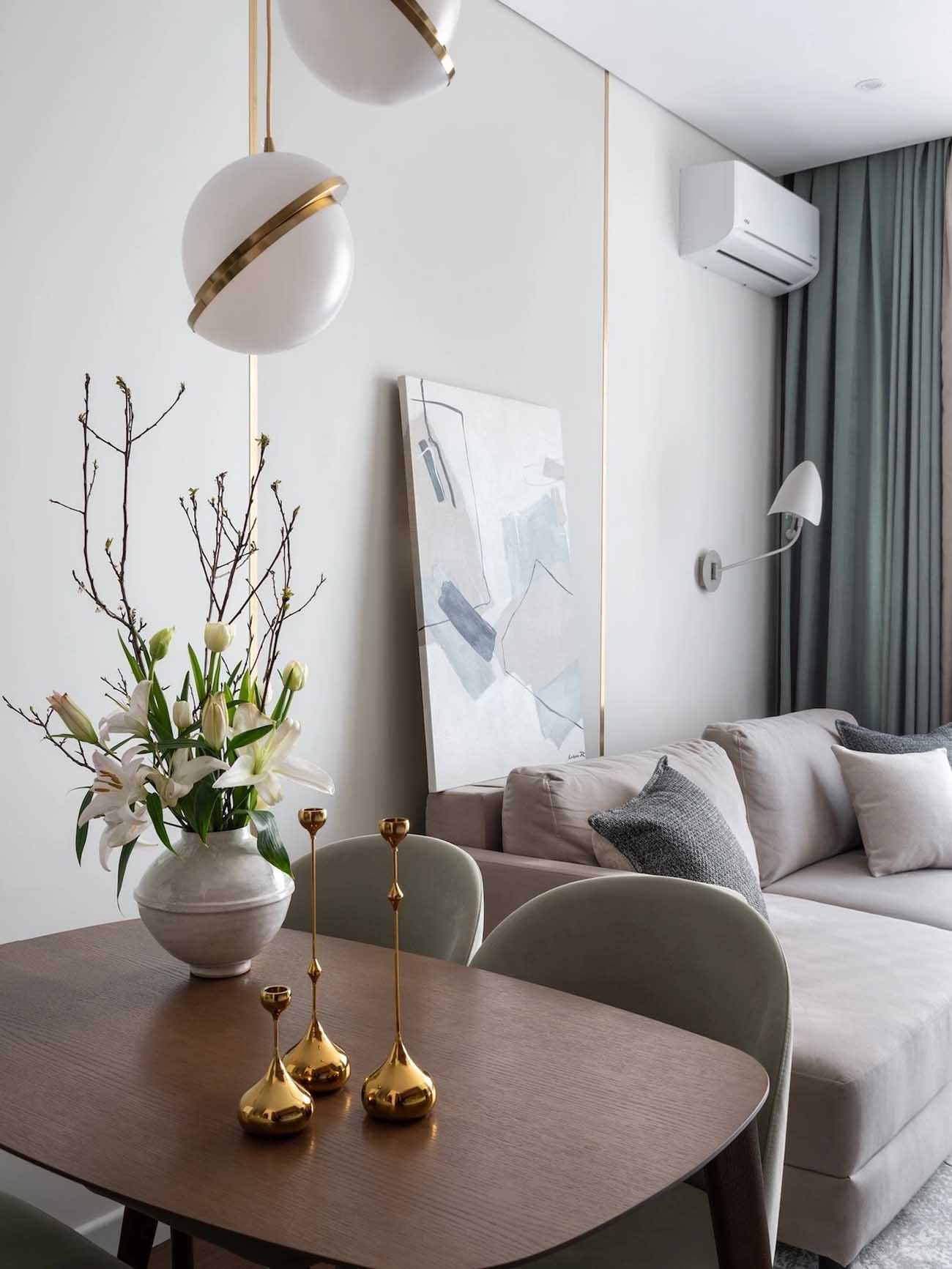 A 66 m²-es lakás tulajdonosai – házaspár és két fiúgyermekük – azzal a kéréssel fordultak a tervezőhöz, hogy funkcionális, ugyanakkor harmonikus és barátságos otthont teremtsen számukra. A fő cél egy olyan modern, letisztult tér kialakítása volt, amely a nyugalom és a pihenés légkörét árasztja, felesleges részletek nélkül, békés színárnyalatokkal. A család referenciai között modern klasszikus és skandináv stílusjegyek egyaránt szerepeltek, így a tervezés egyik kulcskérdése az volt, hogy megtalálják azt az egyedi esztétikát, amelyben a család igazán komfortosan érzi magát. A végeredmény egy modern enteriőr lett, amely szabadon ötvöz különböző megoldásokat és anyagokat.