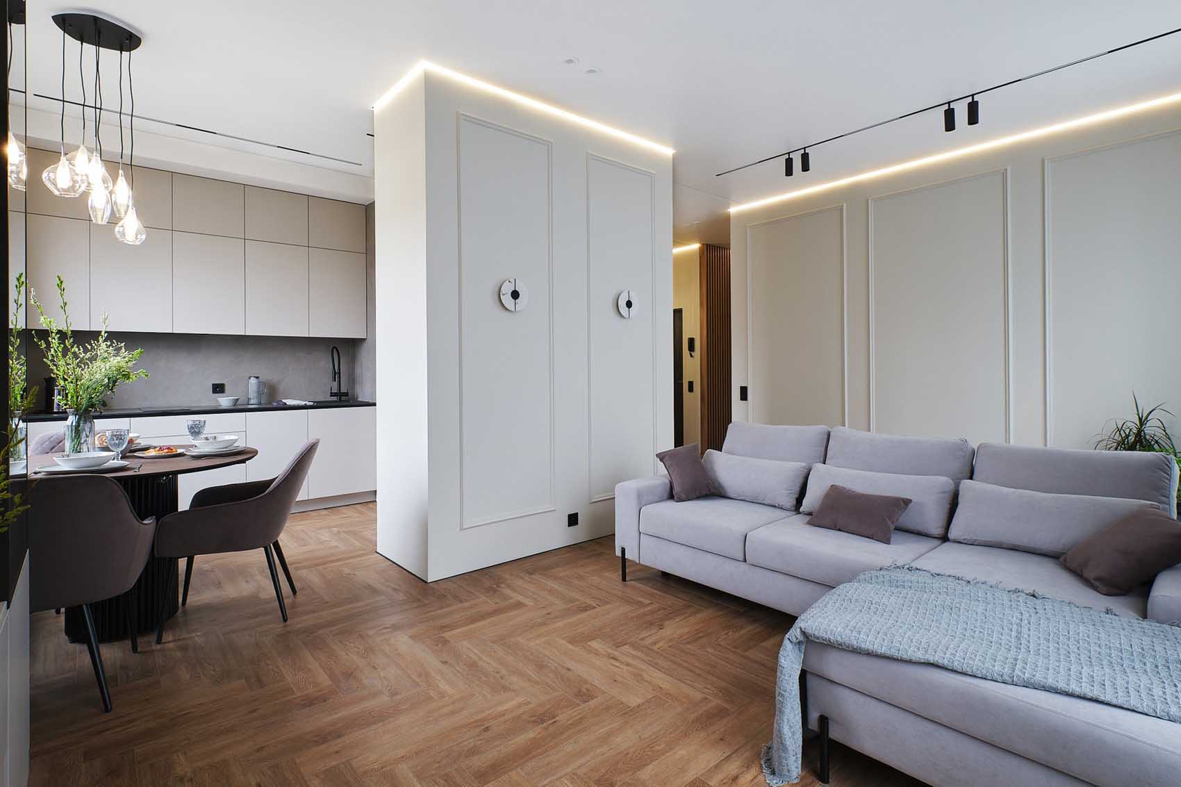 Fény, tágas térérzet és minimalista megközelítés – ez a három fő jellemző határozza meg annak az ingatlannak a karakterét, amelyet egy férfi megbízásából alakított át a lakberendező. A tervezési folyamat során a cél egy univerzális, mégis karakteres enteriőr kialakítása volt, ahol a harmonikus világítási forgatókönyvek és a bőséges tárolókapacitás találkozik a visszafogott színvilággal.