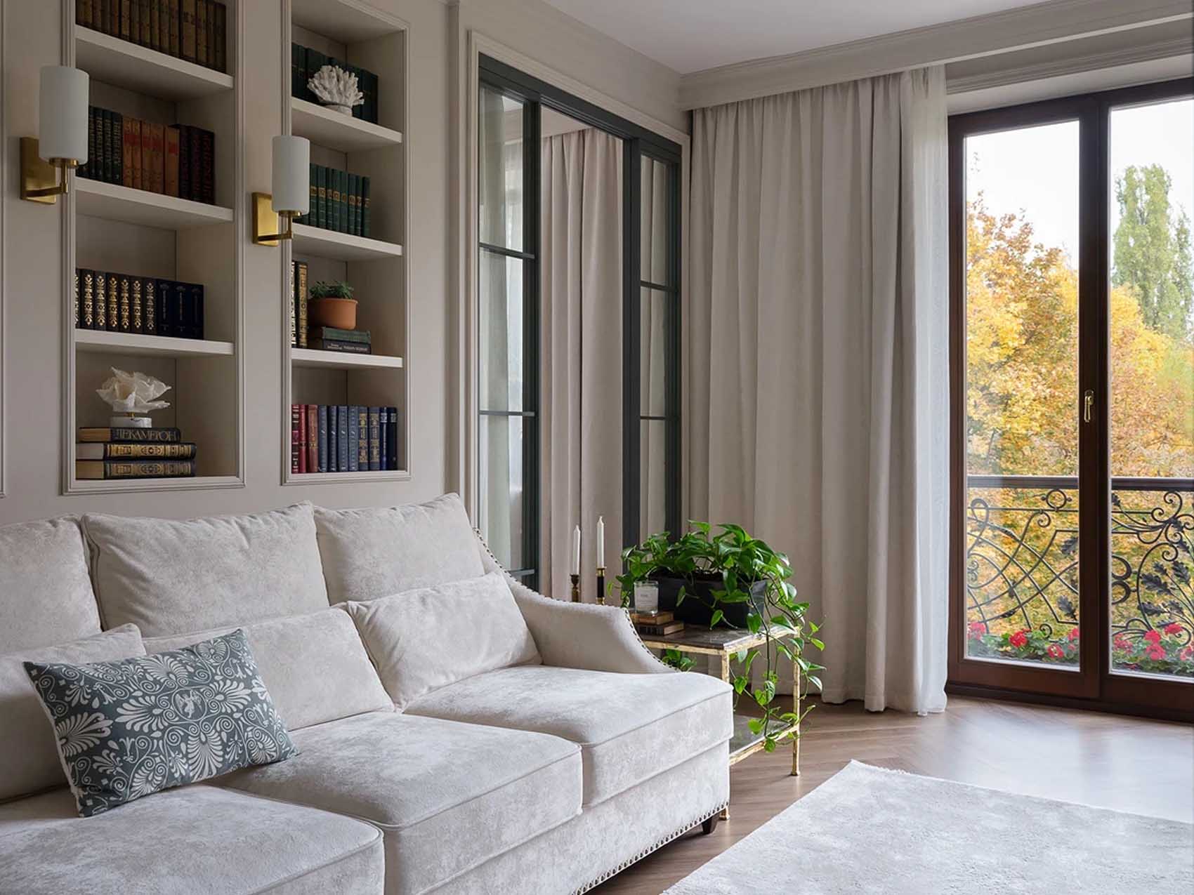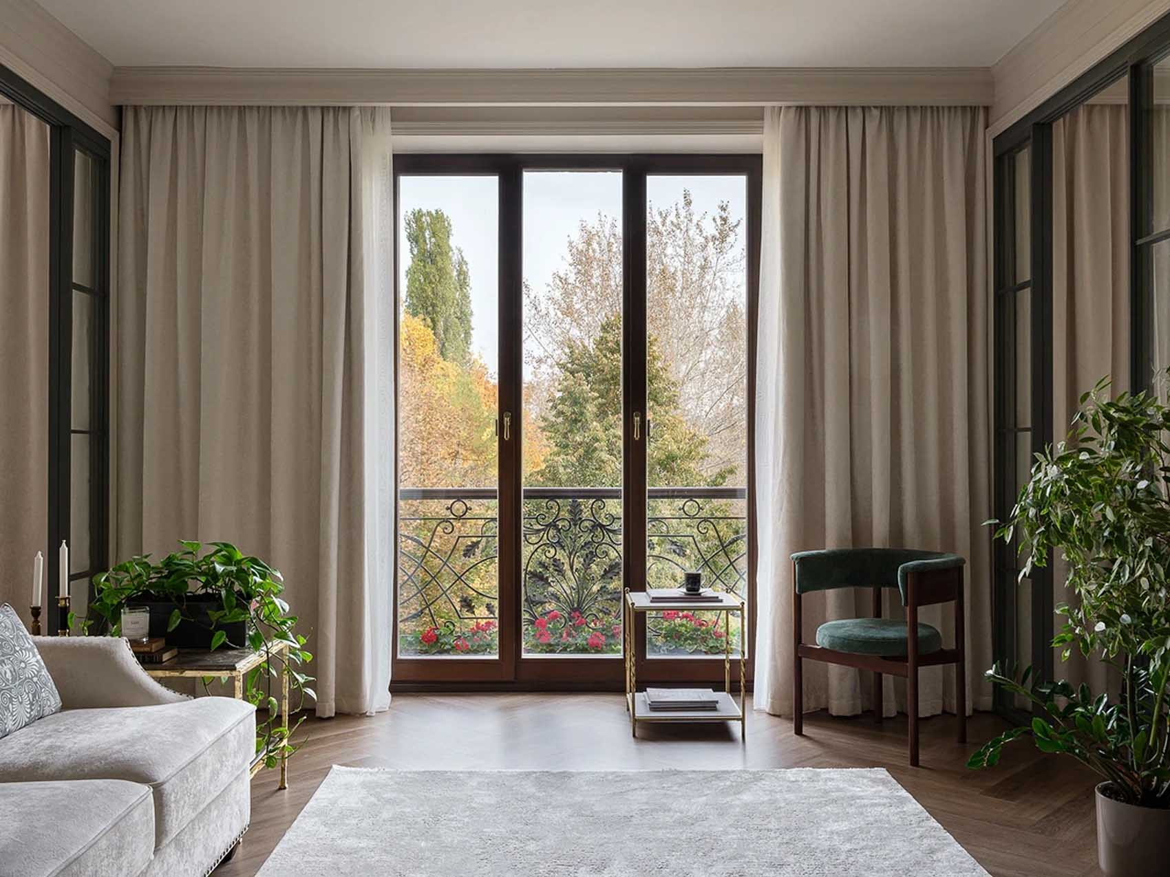 A projekt helyszíne egy patinás, régi építésű bérház, amelynek vastag falai és nagy belmagassága már önmagában is történelmet sugároznak. A tulajdonosok – belsőépítész hölgy és férje – célja egyértelmű volt: megőrizni az épület szellemiségét, miközben a modern életvitelhez igazítják a tereket. A vizuális koncepció központi eleme a kint és bent határának elmosása volt, hogy az ablakokon túli zöld fás park hangulata az enteriőr szerves részévé váljon.