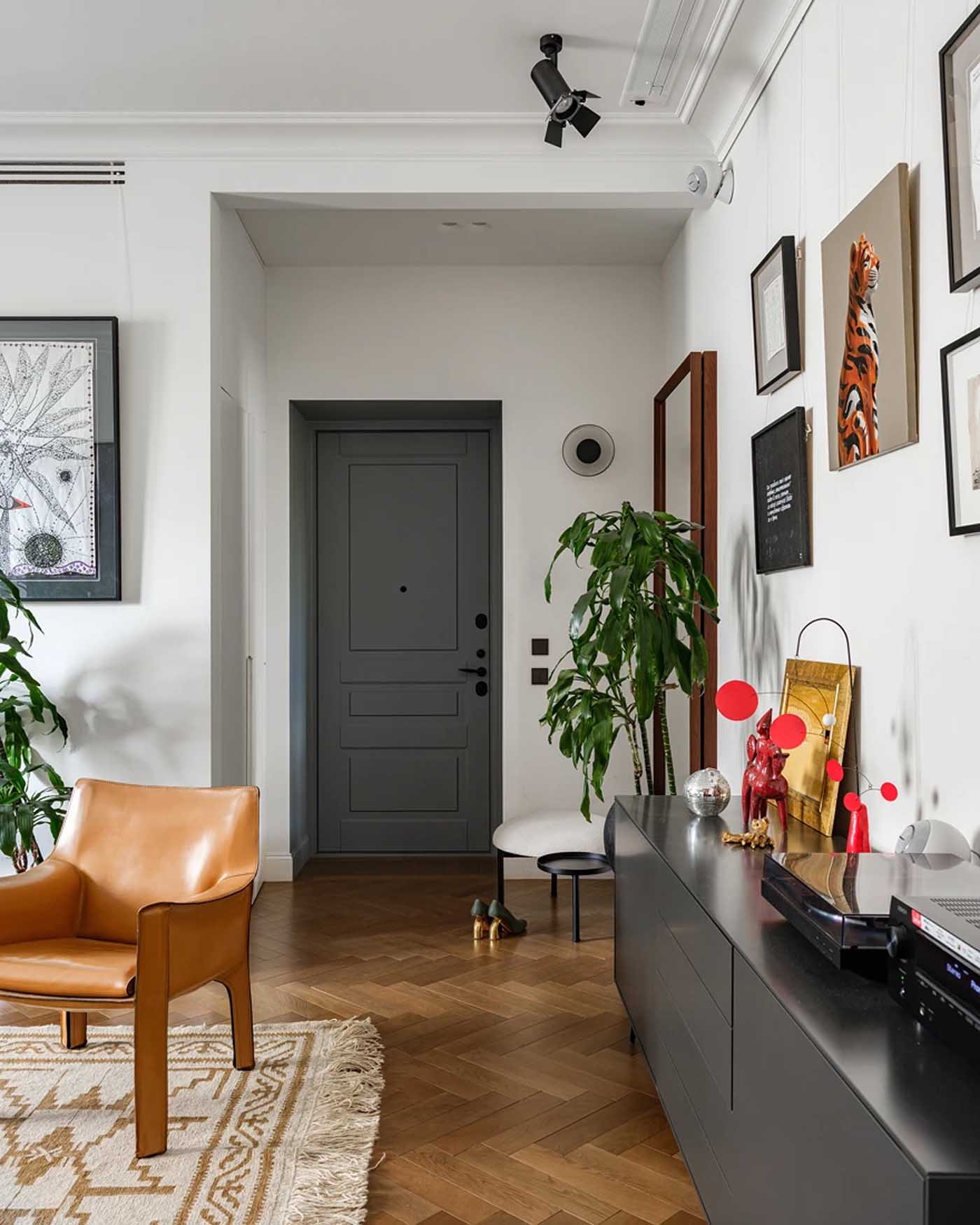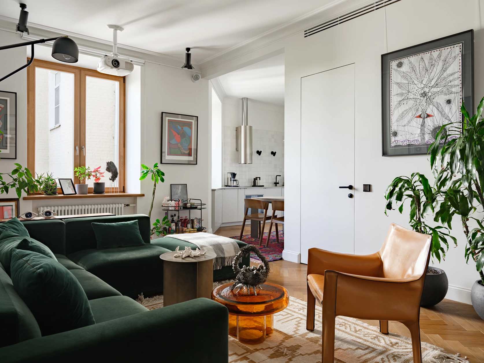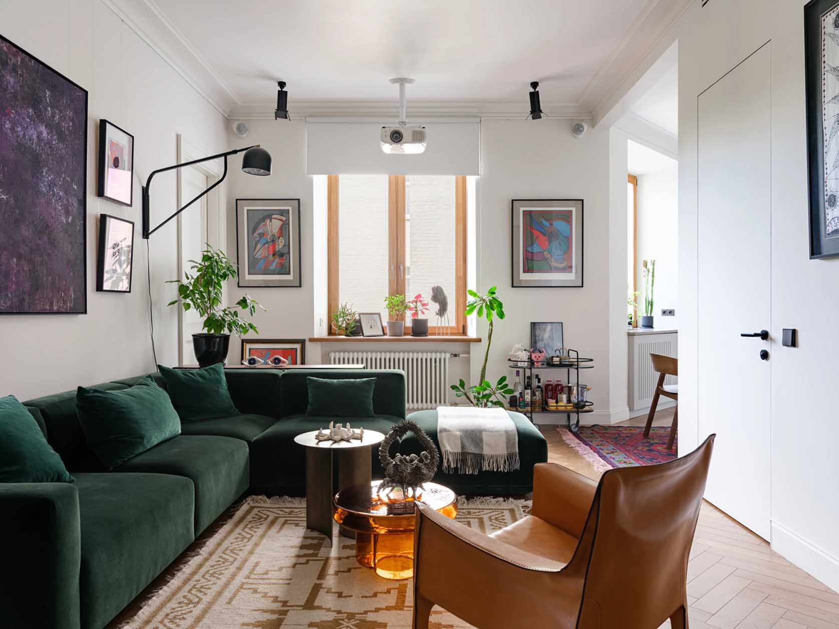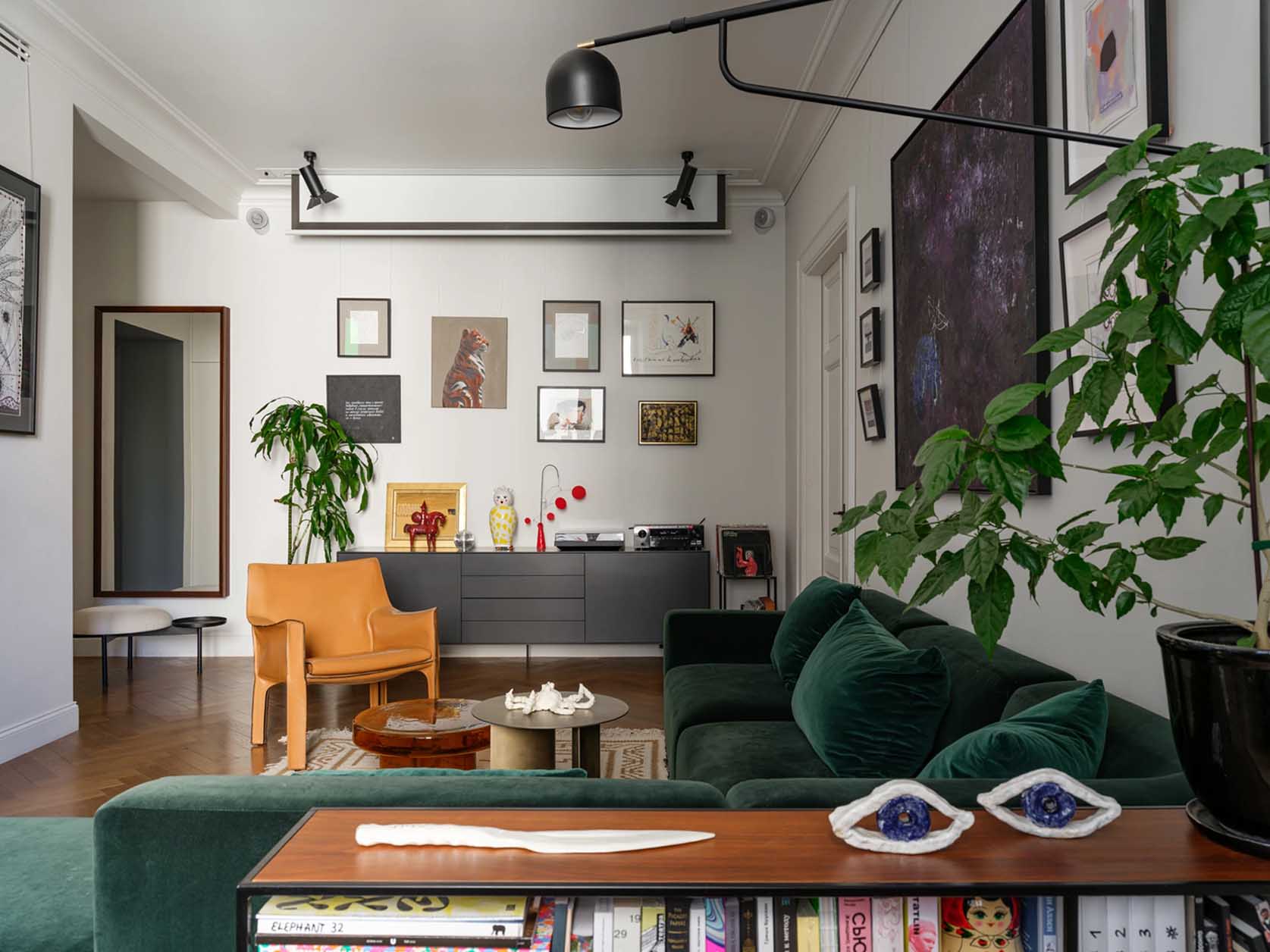 Egy 1920-as évek végén épült, patinás bérházban található ez a 70 m²-es lakás, amely a radikális átalakulás és felújítás után tökéletes otthona lett a kreatív iparban dolgozó tulajdonosnak és kiterjedt műgyűjteményének. A tervezők feladata egy olyan inspiráló, szellős tér megalkotása volt, amely egyrészt hátteret biztosít a kortárs alkotásoknak, másrészt összhangban van az épület polgári karakterével.