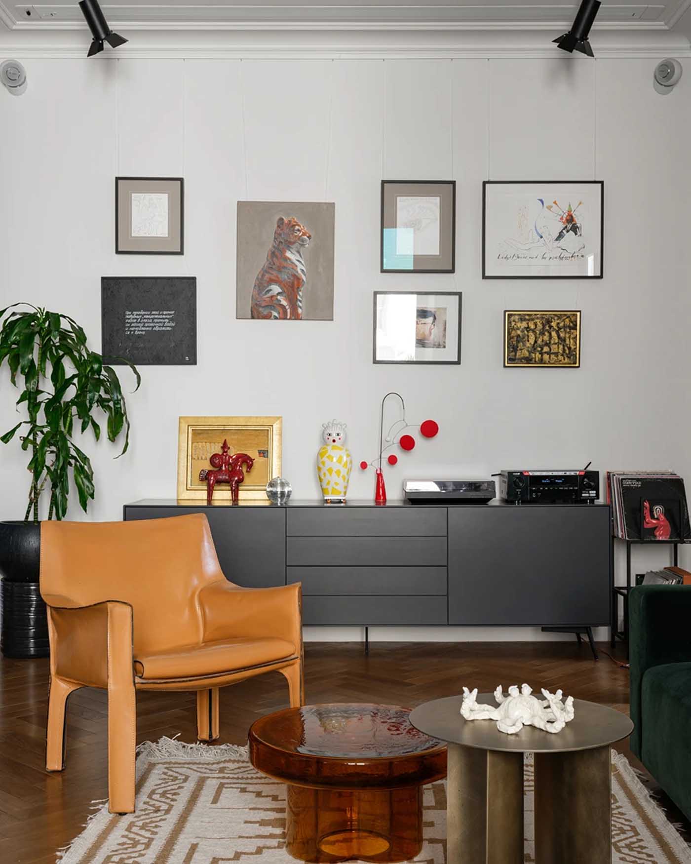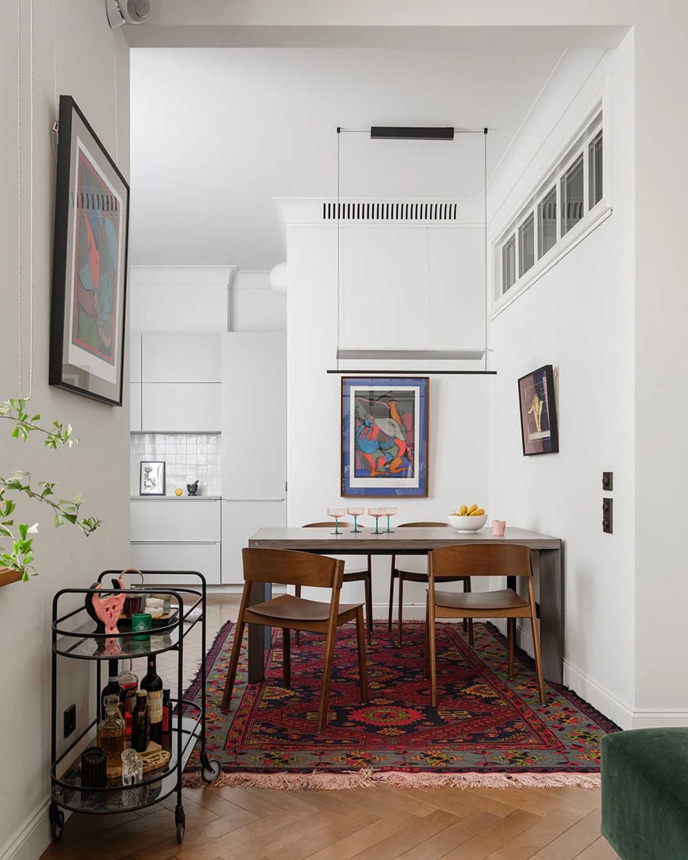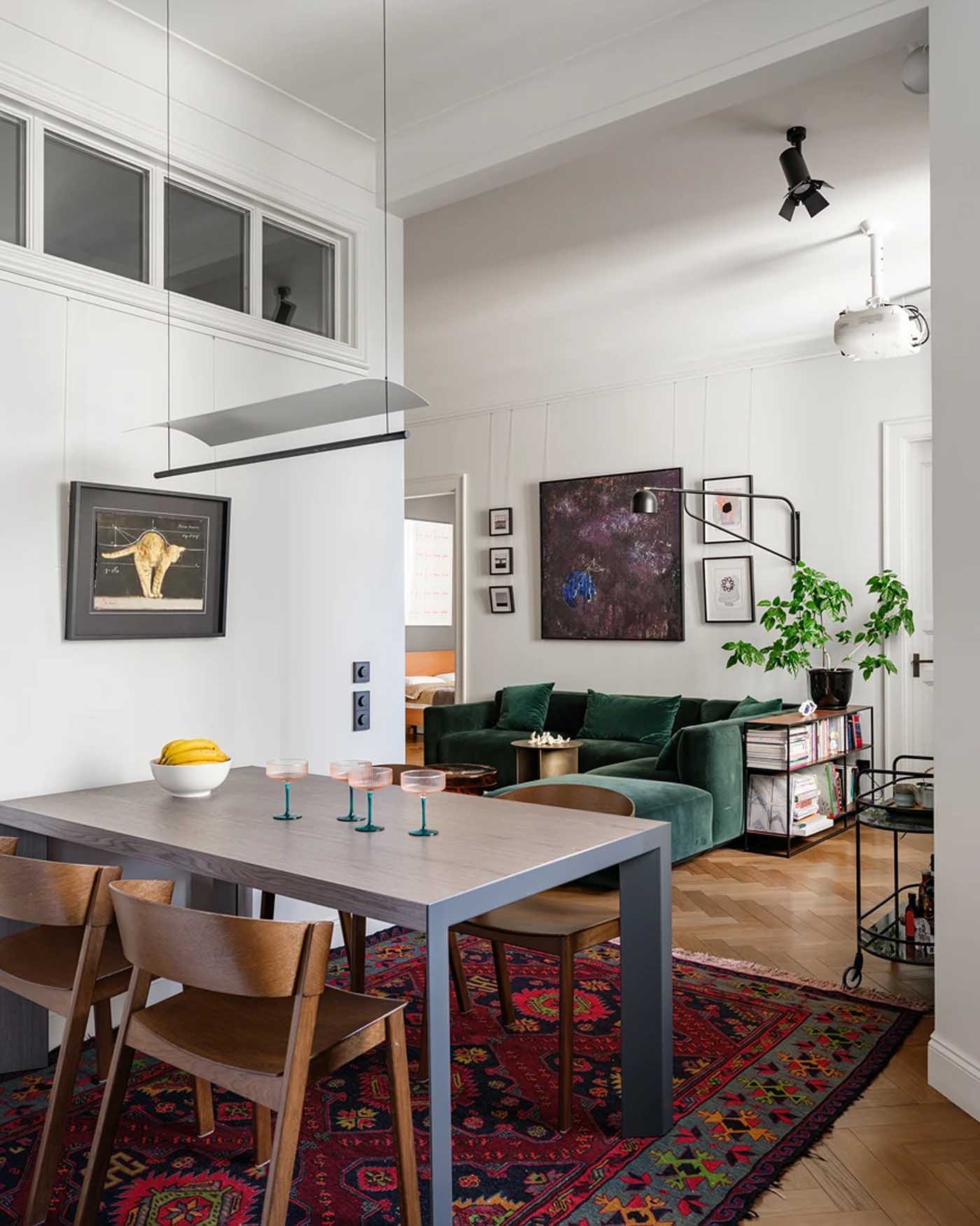 Egy 1920-as évek végén épült, patinás bérházban található ez a 70 m²-es lakás, amely a radikális átalakulás és felújítás után tökéletes otthona lett a kreatív iparban dolgozó tulajdonosnak és kiterjedt műgyűjteményének. A tervezők feladata egy olyan inspiráló, szellős tér megalkotása volt, amely egyrészt hátteret biztosít a kortárs alkotásoknak, másrészt összhangban van az épület polgári karakterével.