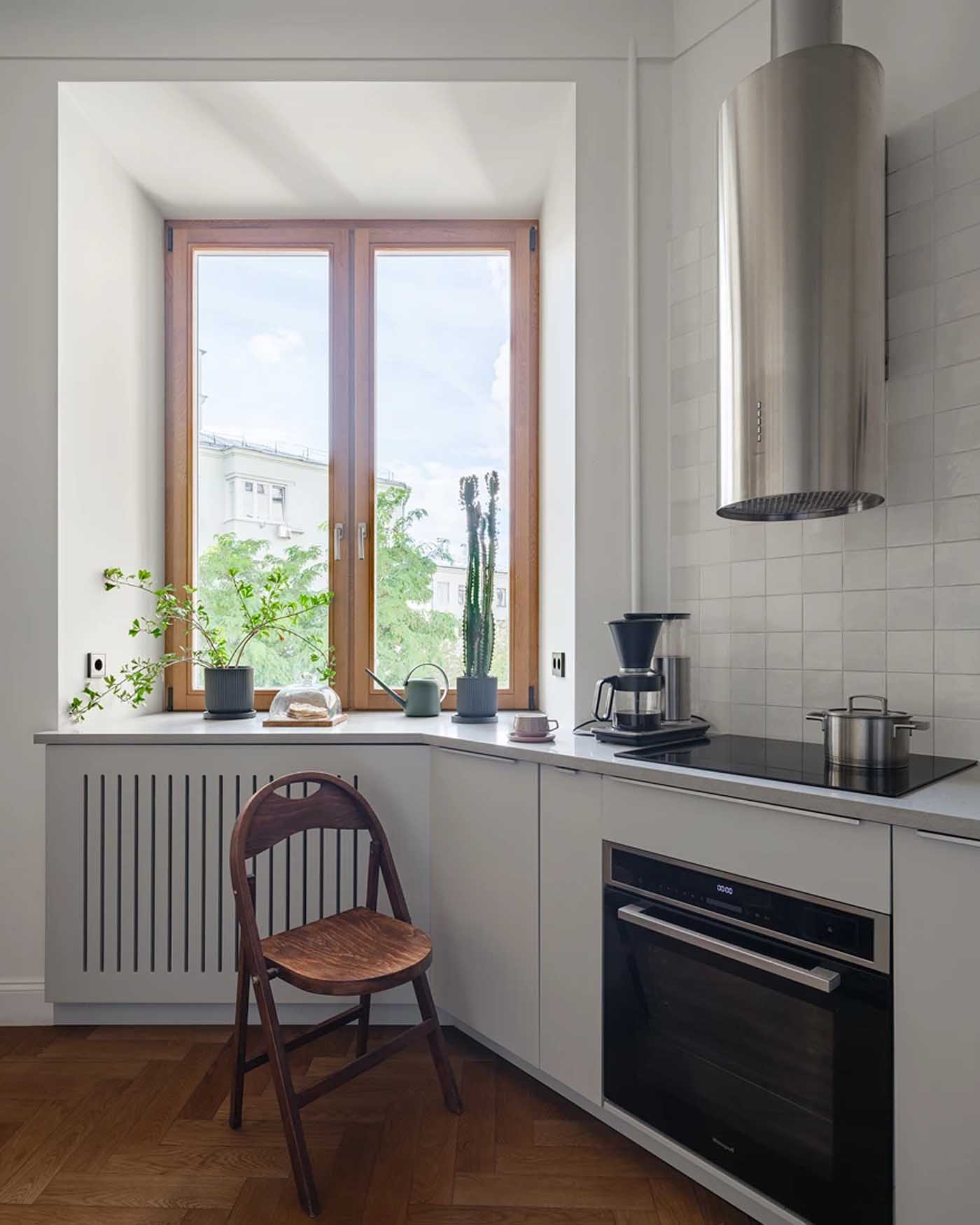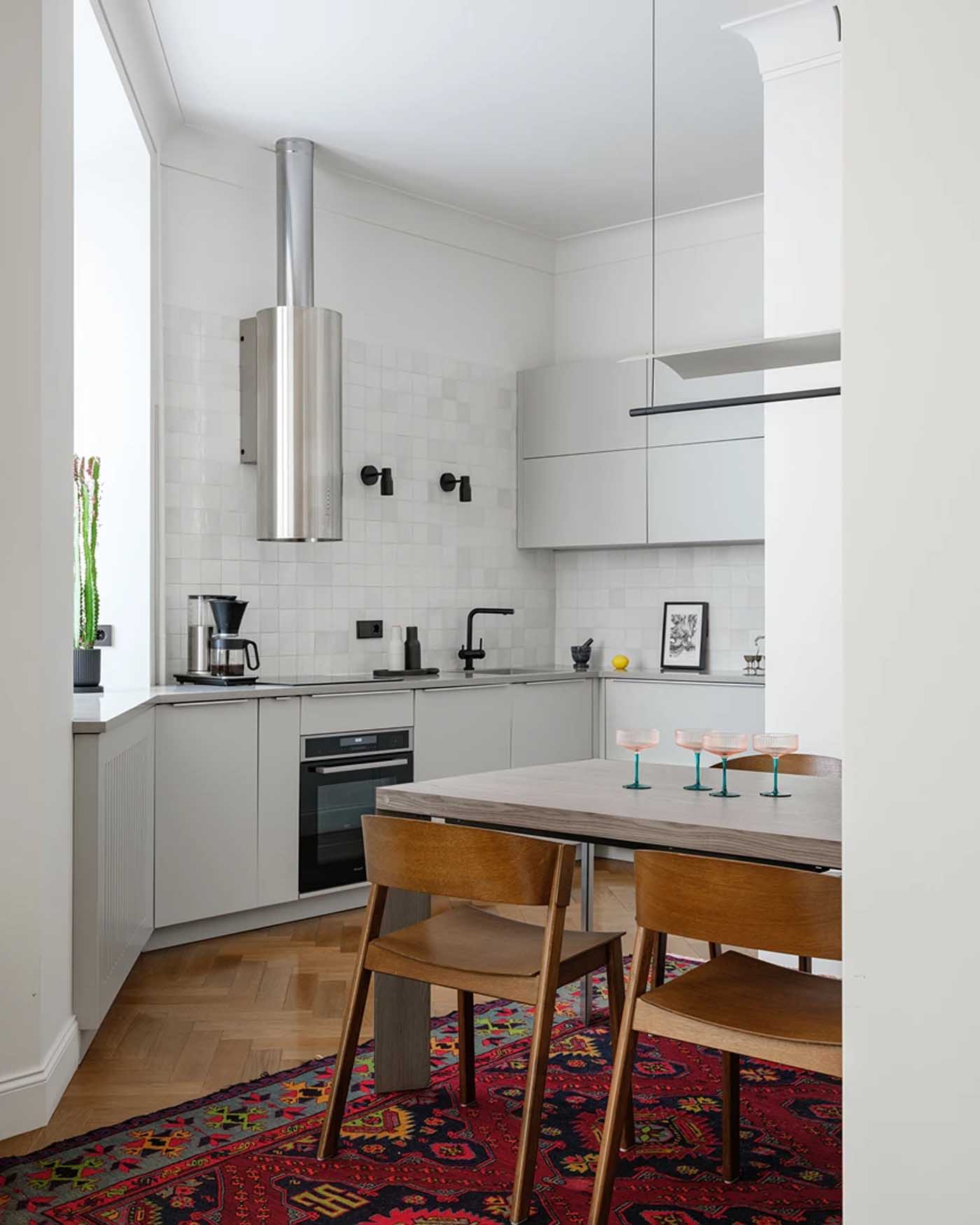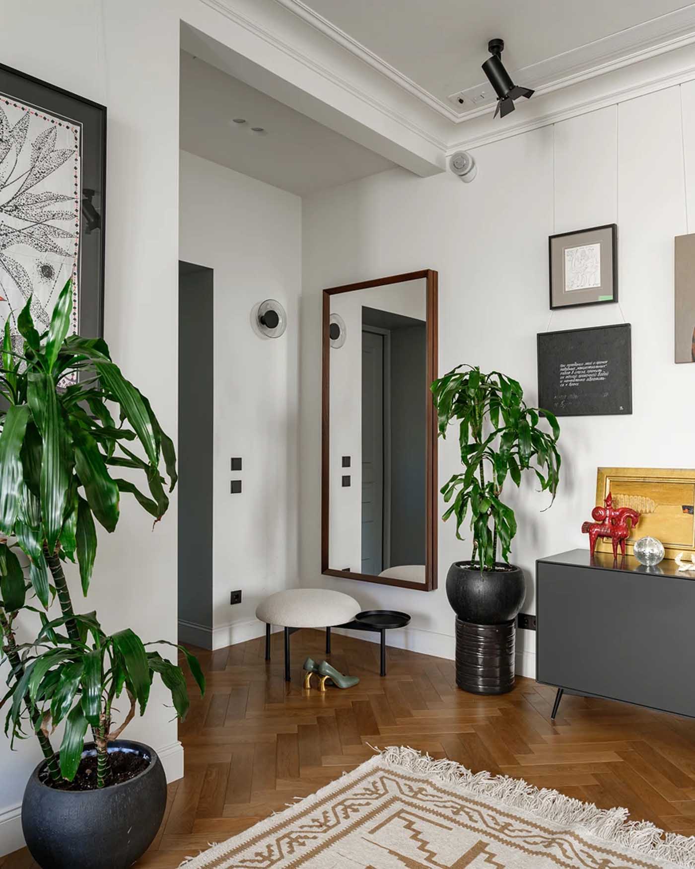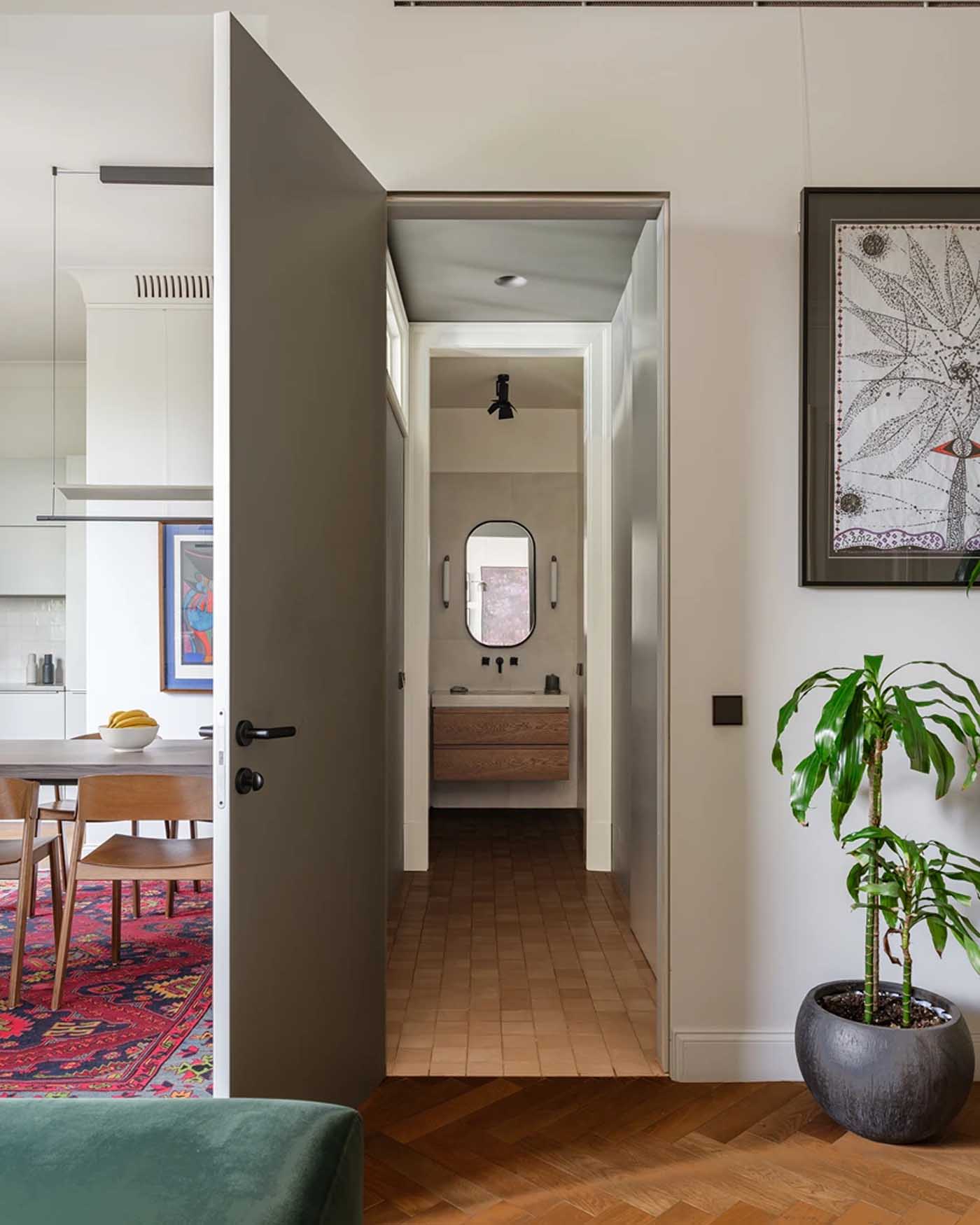 Egy 1920-as évek végén épült, patinás bérházban található ez a 70 m²-es lakás, amely a radikális átalakulás és felújítás után tökéletes otthona lett a kreatív iparban dolgozó tulajdonosnak és kiterjedt műgyűjteményének. A tervezők feladata egy olyan inspiráló, szellős tér megalkotása volt, amely egyrészt hátteret biztosít a kortárs alkotásoknak, másrészt összhangban van az épület polgári karakterével.