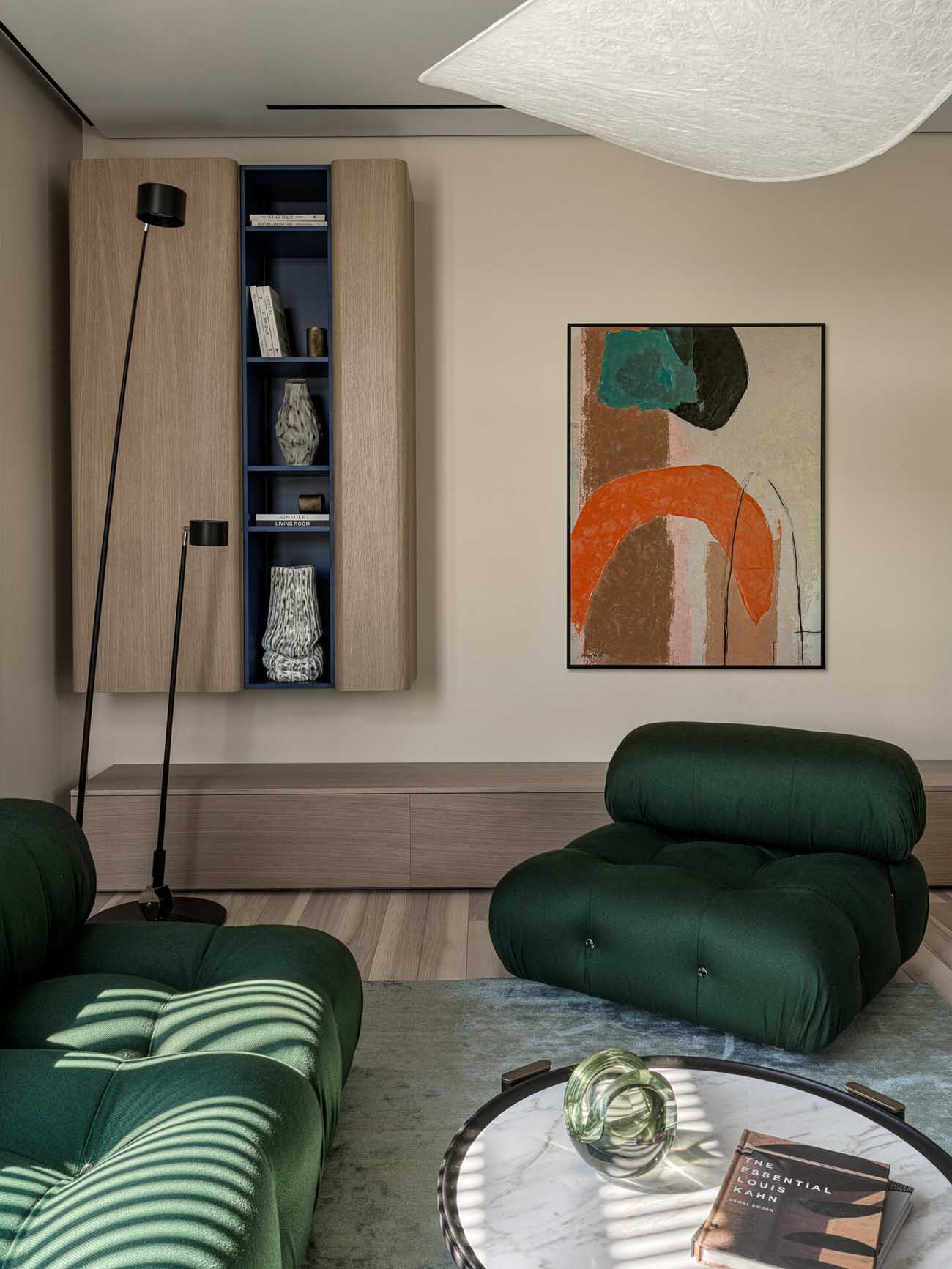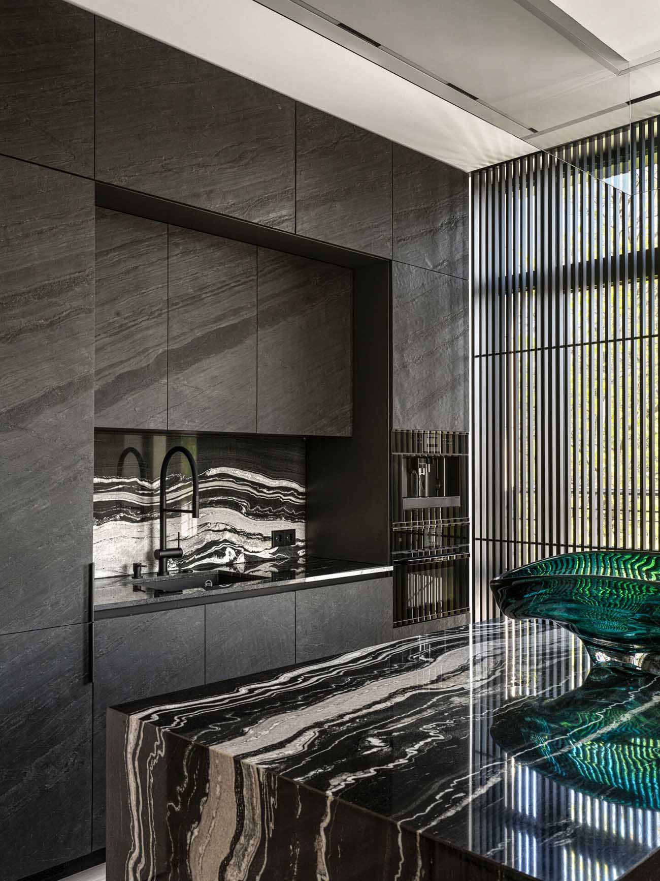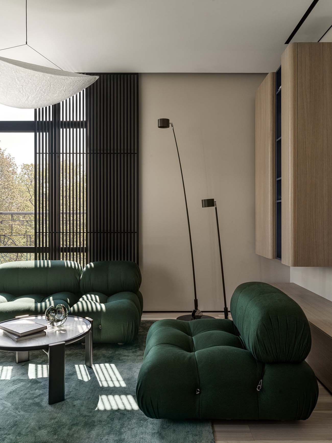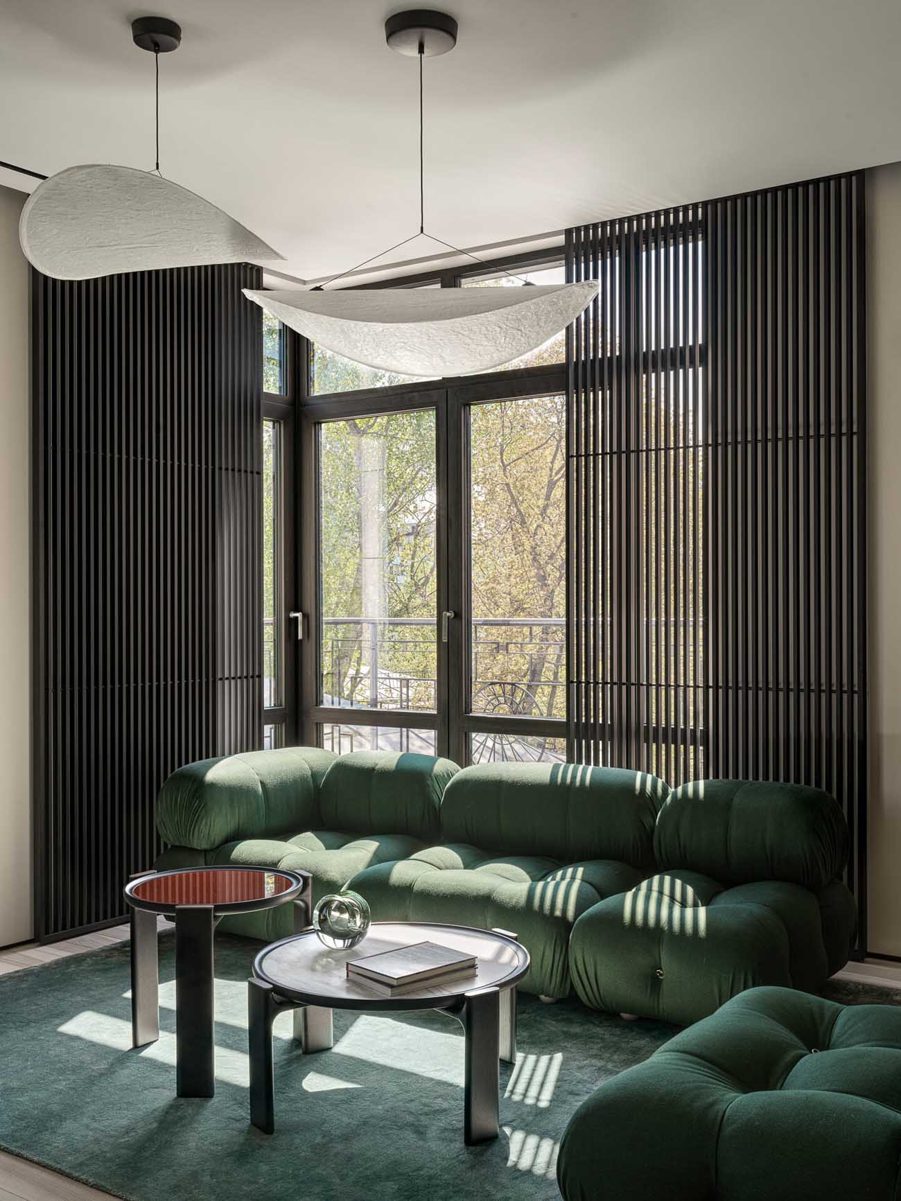 „Ha egyetlen kedvenc megoldást kellene választanom, az a vibráló zöld előszoba lenne. Belépve szinte egy másik dimenzióba csöppenünk; a nagyméretű tükör játéka miatt egy pillanatra elbizonytalanodunk, mi is a valóság” – meséli a tervező.