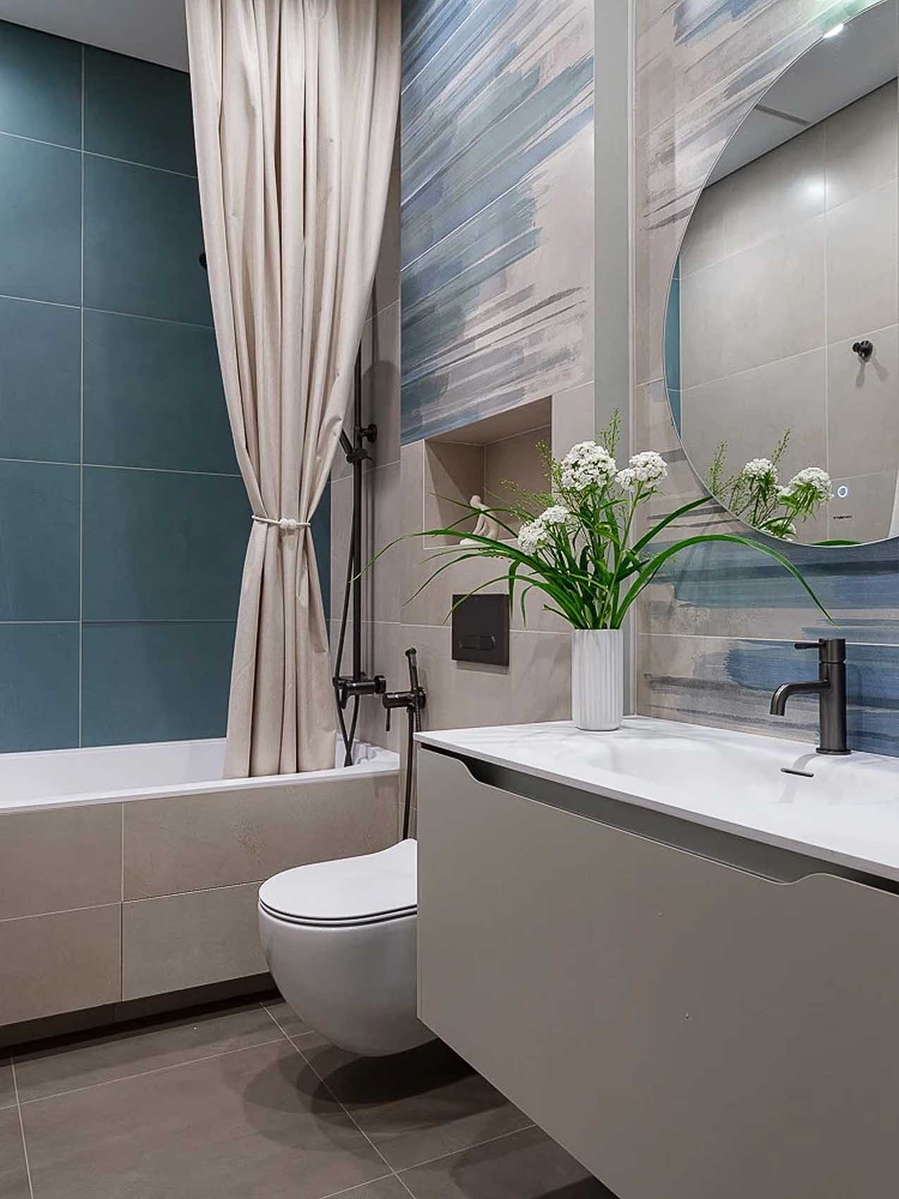 Fürdőszoba: íves formák és frissítő árnyalatok