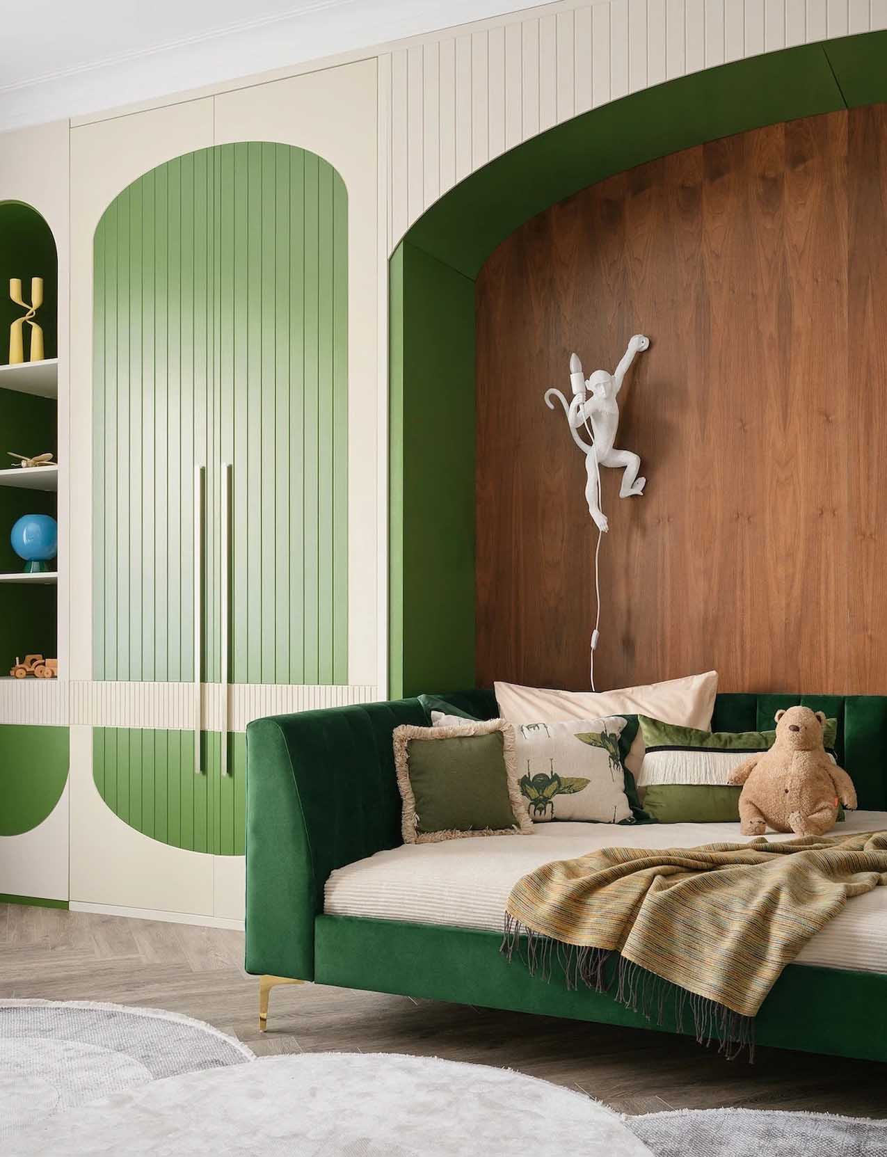 A két gyerekszobát (egy kislány és egy kisfiú számára) szintén a funkcionalitás és a hosszú távú használhatóság jegyében tervezték. Mindkét szobában beépített szekrények, valamint könyvek és játékok tárolására alkalmas polcrendszerek kaptak helyet. A tervező előrelátóan mindkét szobába tervezett egy-egy íróasztalt, így a kisebbik gyermek szobája is felkészült a jövőbeli igényekre.