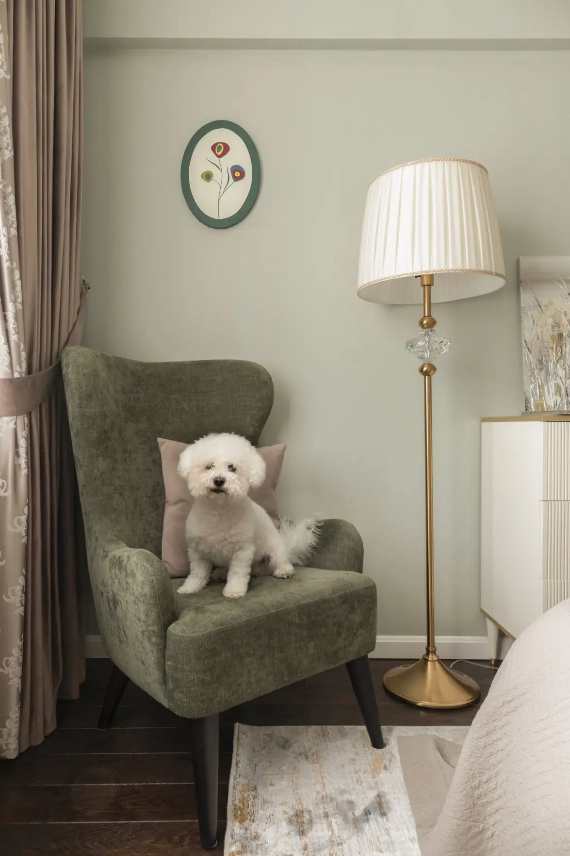 Az 1957-ben épült házban vásárolt 60 négyzetméteres lakáshoz évtizedek óta nem nyúltak, így mindenre kiterjedő, teljes felújítást igényelt. A lakberendező ügyfele egy idejének nagy részében távmunkában dolgozó, középkorú hölgy, akinek a fő kívánsága egy kifejezetten otthonos enteriőr megalkotása volt, amelyben hangsúlyos szerepet kapnak a növényi és virágmotívumok, valamint a természetes anyagok. Szintén alapvető elvárás volt a bőséges, de okosan elrejtett tárolóhelyek kialakítása.