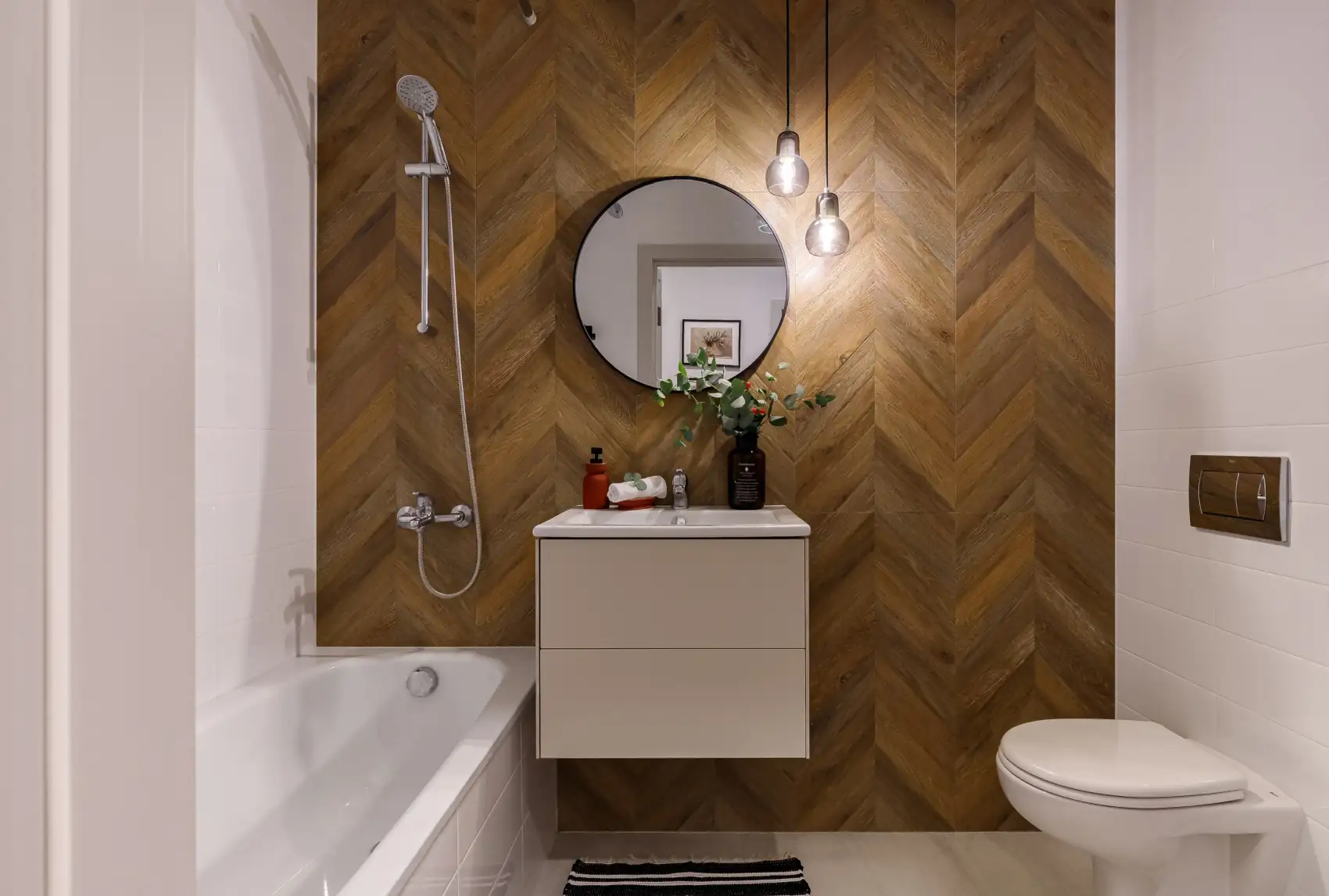 Minden egyes dekorációs elem – a legkisebb párnáktól kezdve a festményekig – ennek a palettának a szigorú figyelembevételével lett kiválasztva. A terekben dominálnak a természetes anyagok, a jól tapintható felületek, a fonott kiegészítők és az egyedi, szerzői textíliák. A tudatosan elhelyezett kézműves tárgyak pedig igazán személyessé és egyedivé varázsolják a lakást.