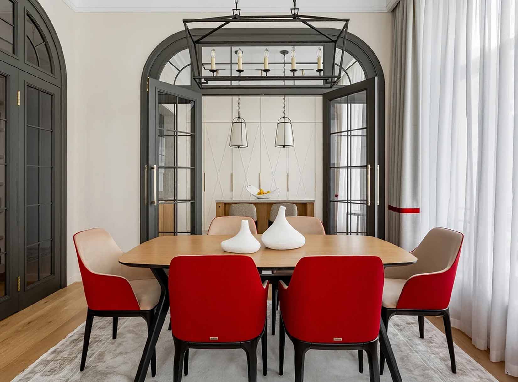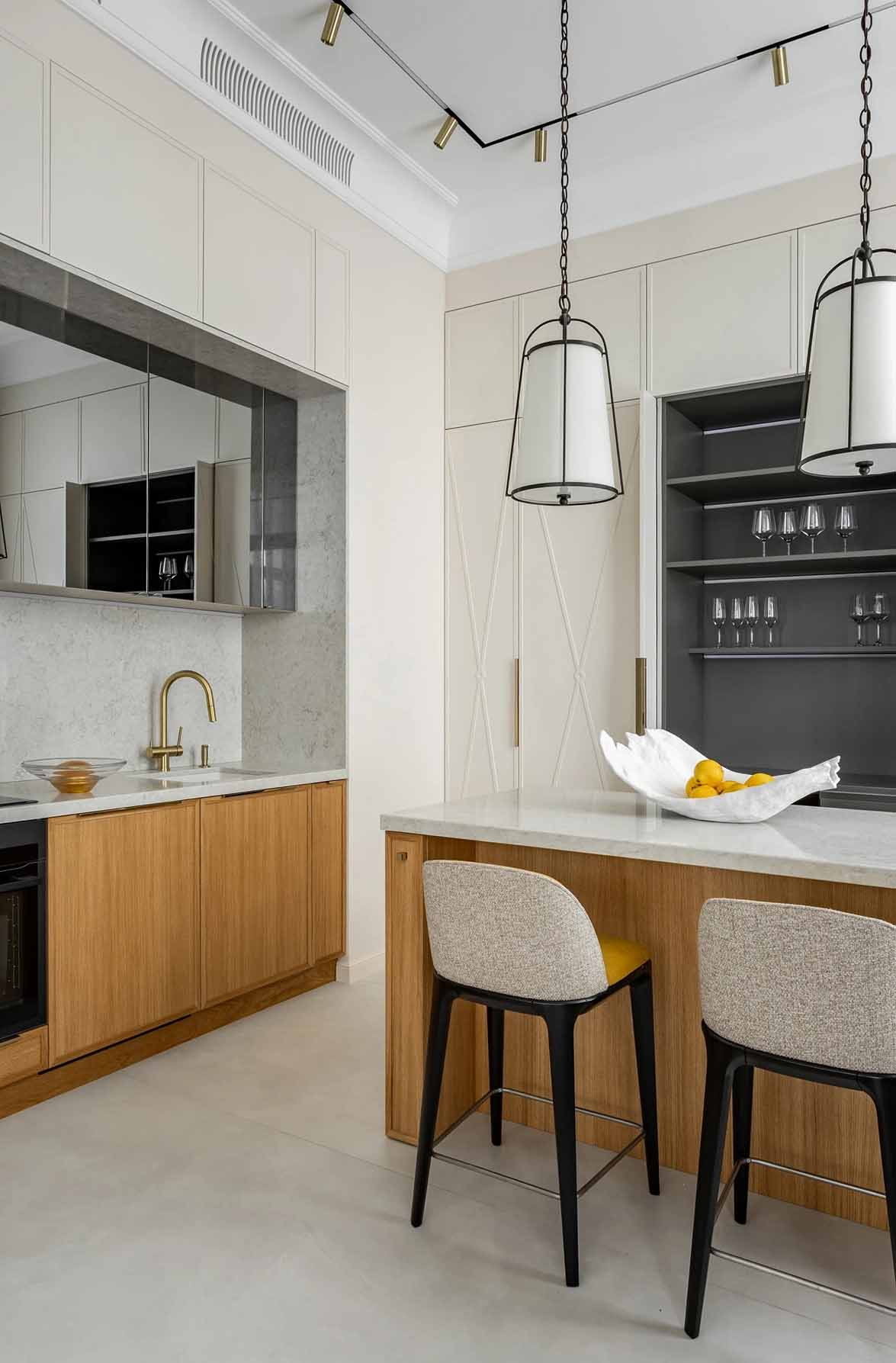 Elegancia és energia találkozása jellemzi ezt az enteriőrt ebben a 98 m²-es lakásban, melyet egy lányos család számára terveztek. A dizájn a modern klasszikus stílus szellemében született: egyszerre visszafogott, elegáns, ugyanakkor életteli. A alapot a semleges bézs árnyalatok adják, amelyeket karakteres színfoltok törnek meg – az ötlet a tulajdonos marokkói utazásaiból származik. A cél azonban nem az etnikai motívumok szolgai másolása volt, hanem a színekben rejlő érzelmi töltet és dinamizmus átültetése egy modern, városi környezetbe.