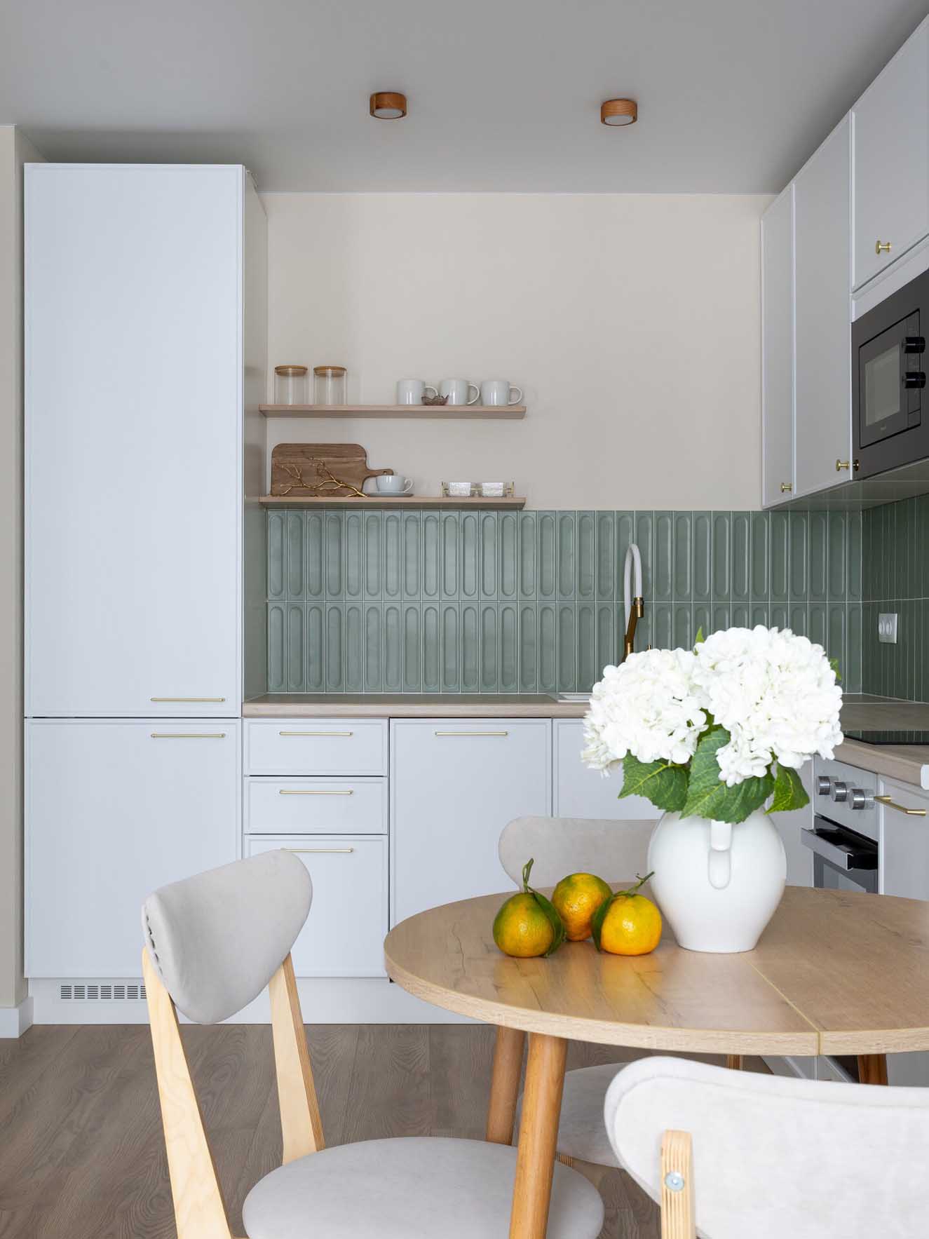 A konyhabútor kiválasztásakor az egyszerű, egyszínű matt frontokkal járhatsz a legjobban. Ezek nemcsak tisztaságot és rendet sugároznak, hanem optikailag tágítják is a teret. A látványt egyetlen karakteres elemmel – például egy színes csempéből álló hátfallal – emelheted ki. Ezzel a módszerrel egy olcsóbb alapbútor is prémium megjelenést kap, hiszen a figyelem a dekoratív részletre irányul.