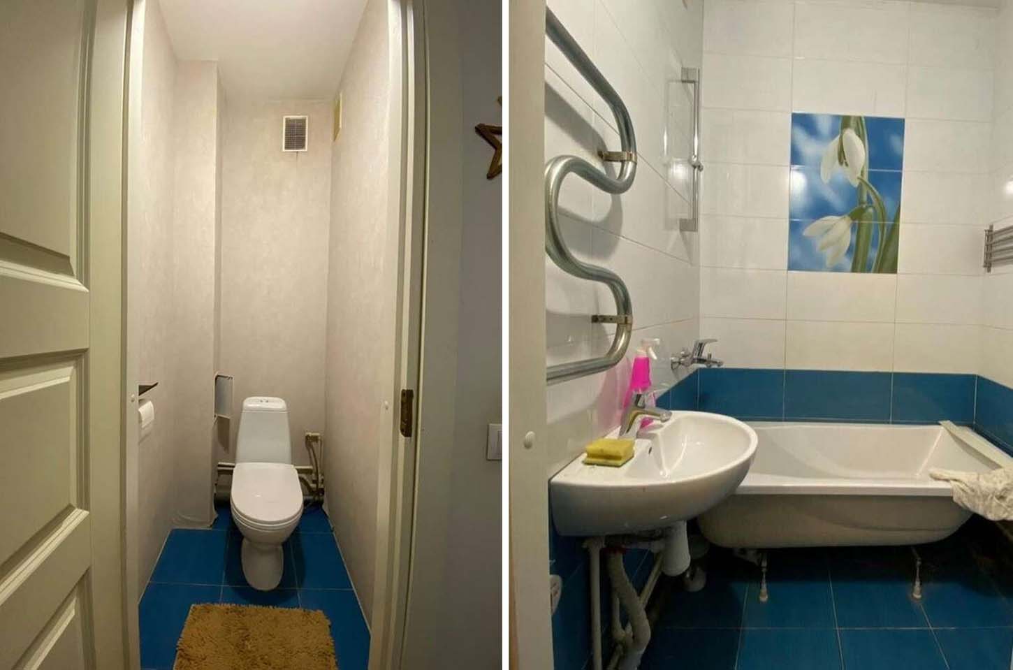 A lakásfelújítás előtt a fürdőszoba és a mellékhelyiség még külön funkcionált, megjelenésükön pedig látszott a több évtizeddel ezelőtt jellemző egyszerű, költséghatékony és jellegtellen kialakítás. Az unalmas burkolatok és a tárolóhelyek szinte teljes hiánya olyan helyiségeket eredményezett, ahol nem csupán a funkcionalitás, de az esztétikum is háttérbe szorult.