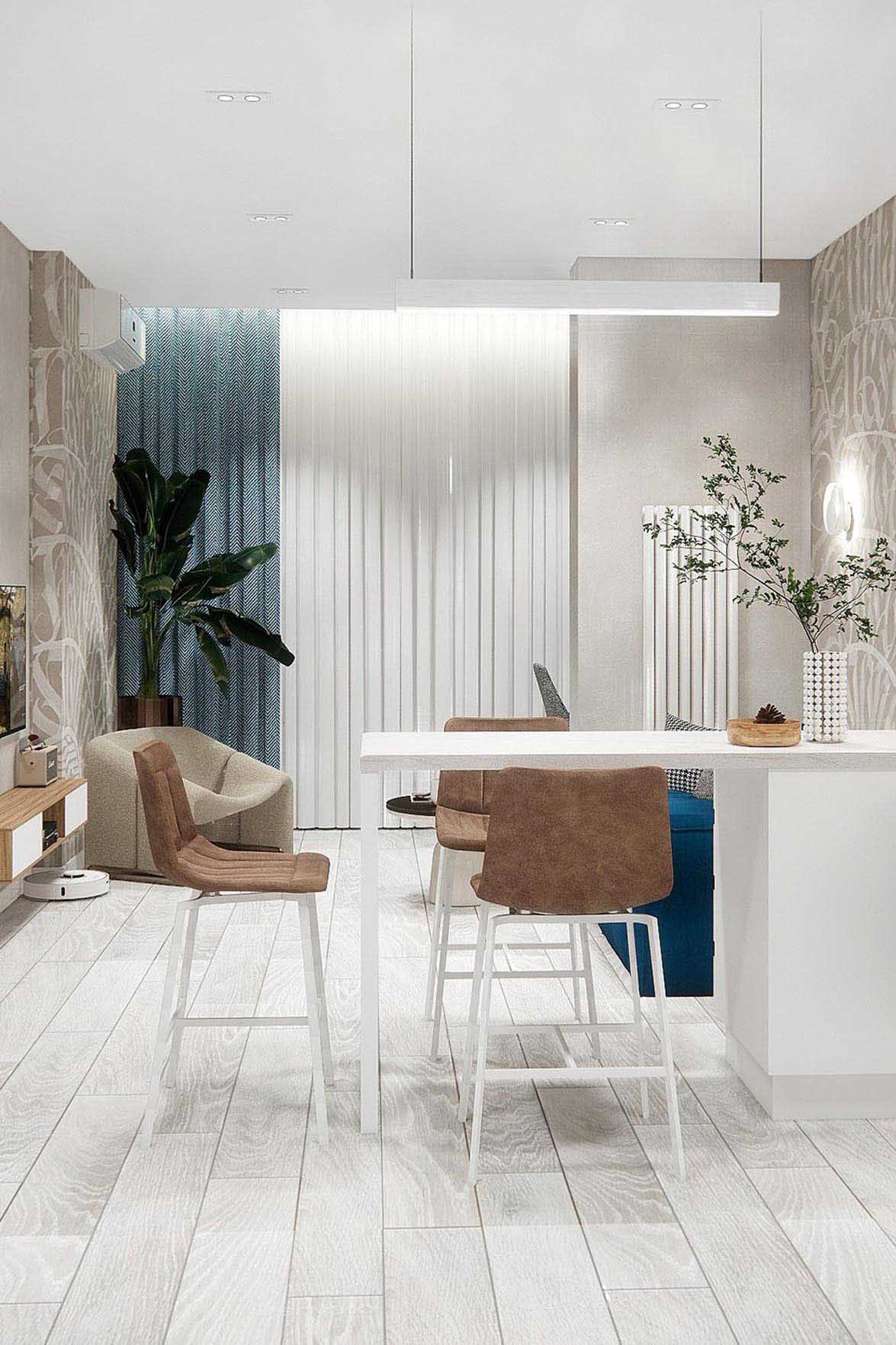 A projekt célja egy olyan harmonikus, világos és minden ízében átgondolt otthon kialakítása volt, amely a modern városi életforma minden igényét kielégíti, a kék akcentusok révén pedig egyedi karaktert és kifinomult stílust sugároz.