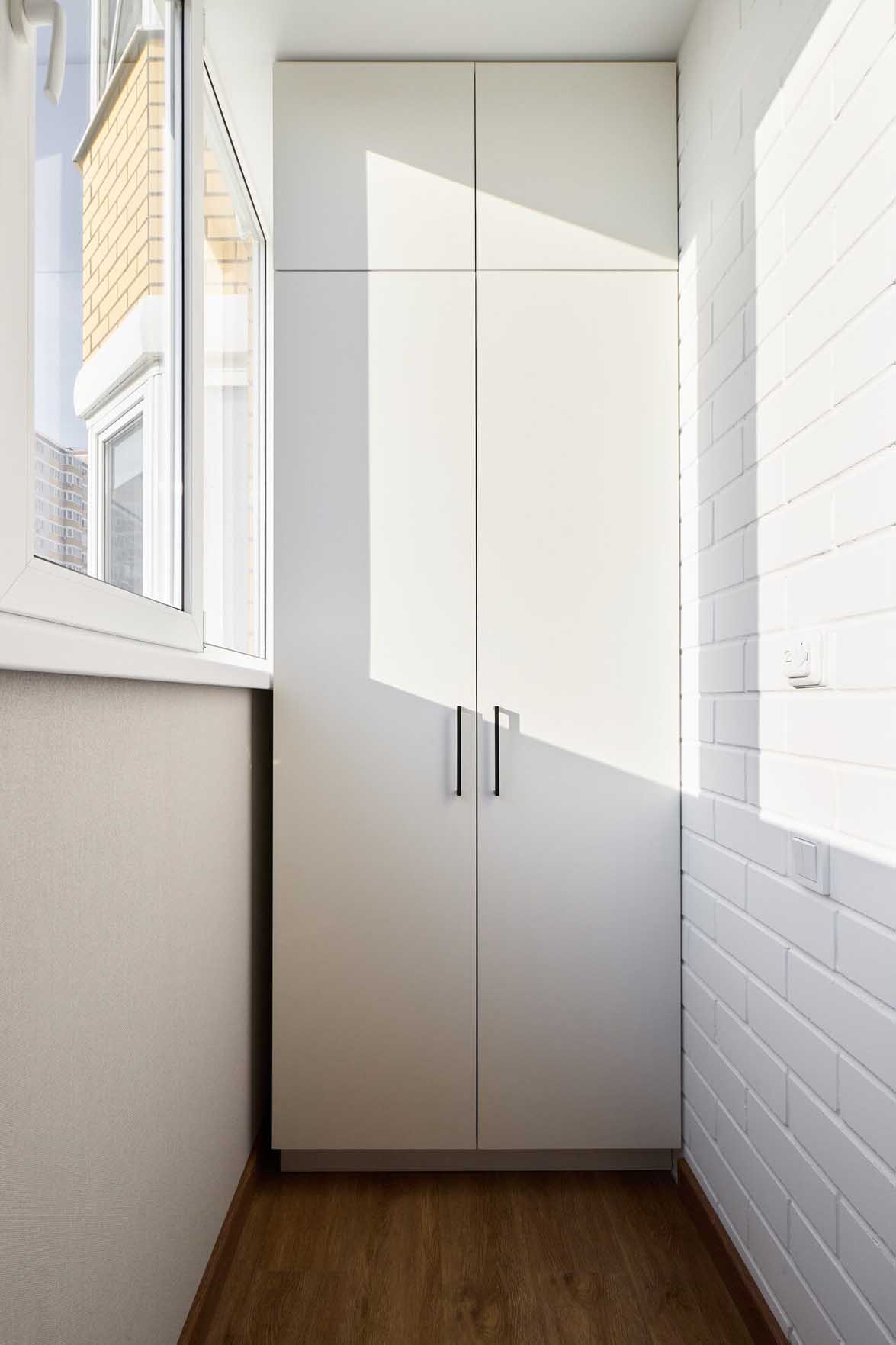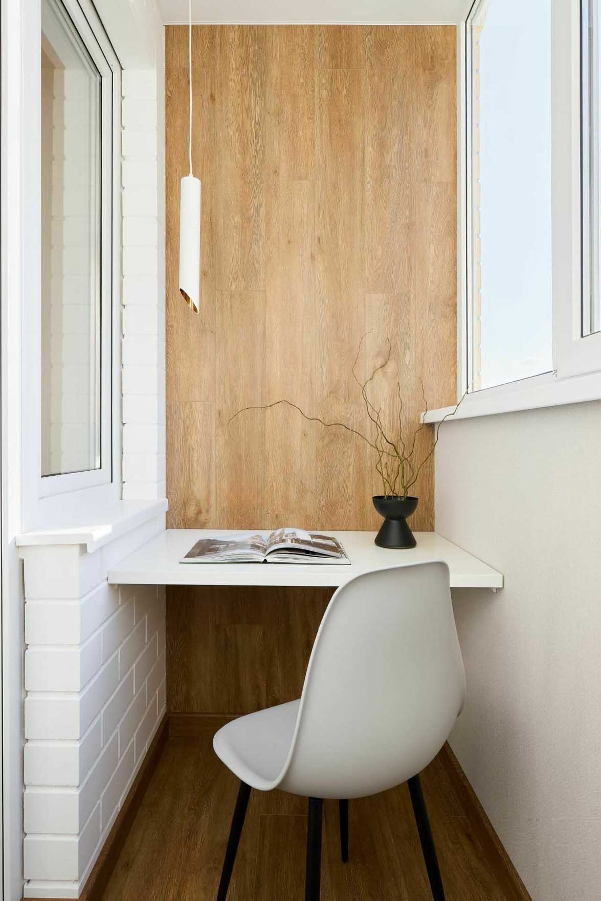 A teret az utólagosan hőszigetelt loggia egészíti ki, ahol egy csendes otthoni munkaállomást rendeztek be – szemben egy méretes, mennyezetig érő szekrény kapott helyet, amely elnyeli a ritkábban használt tárgyakat.