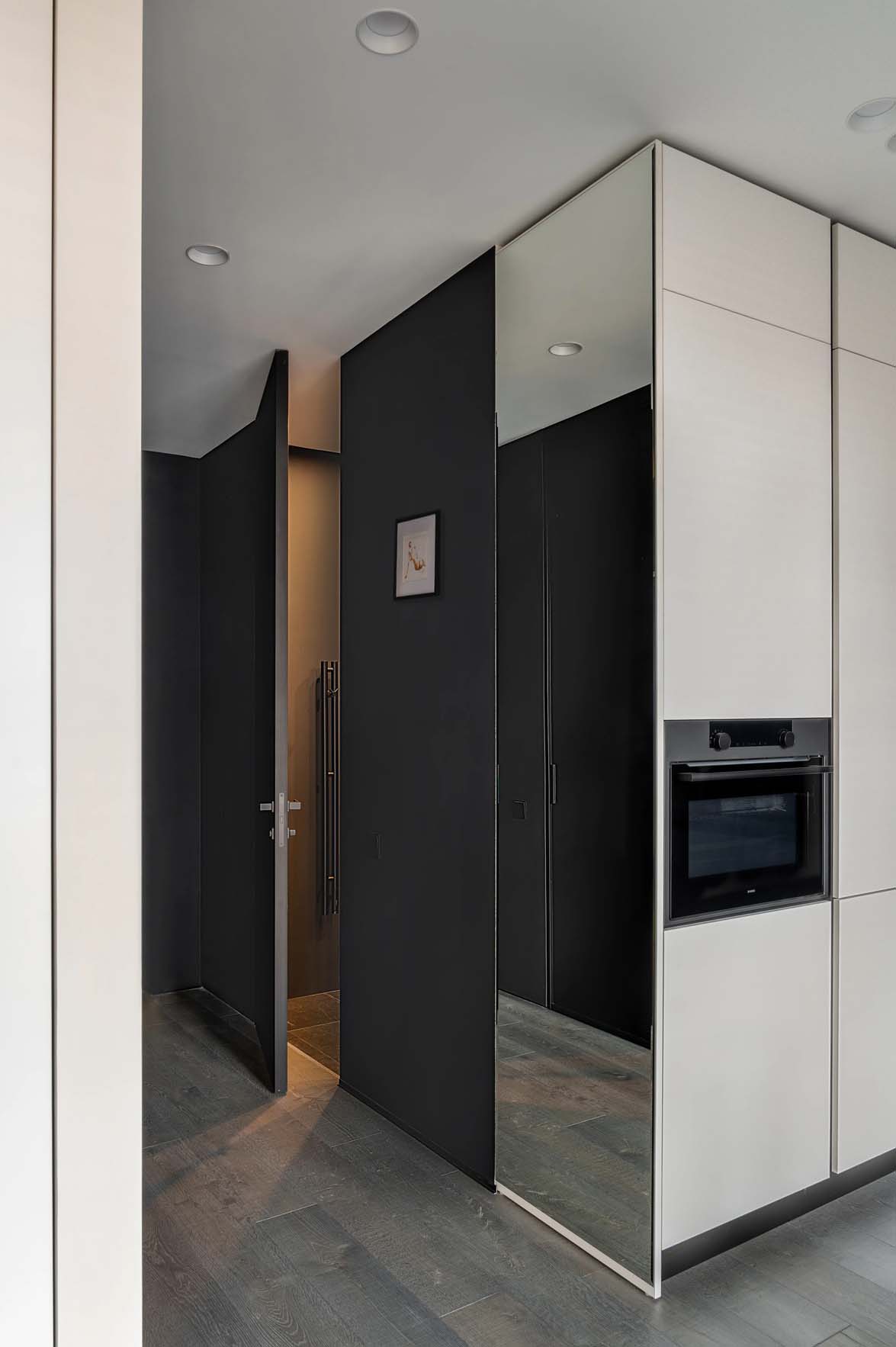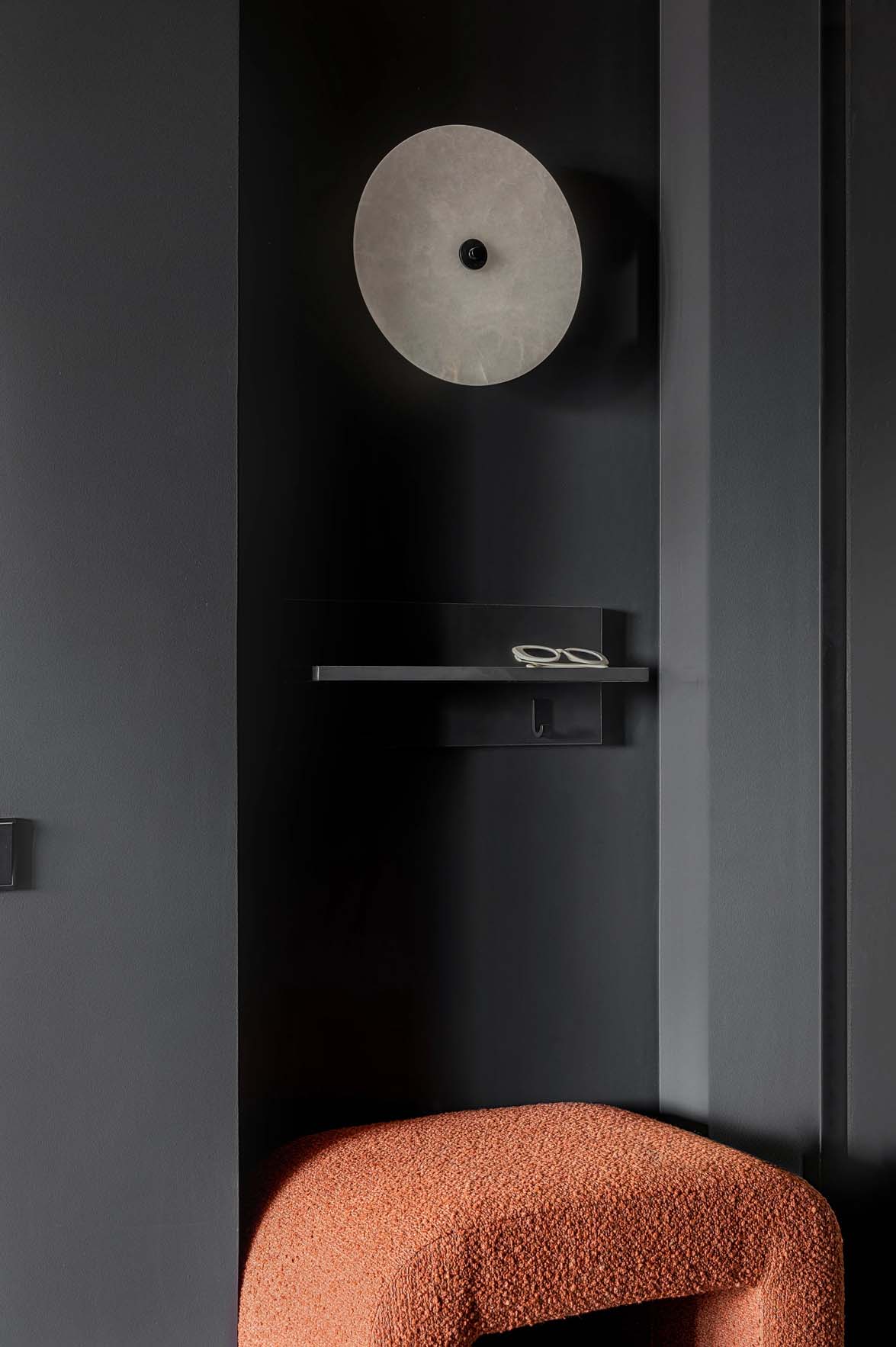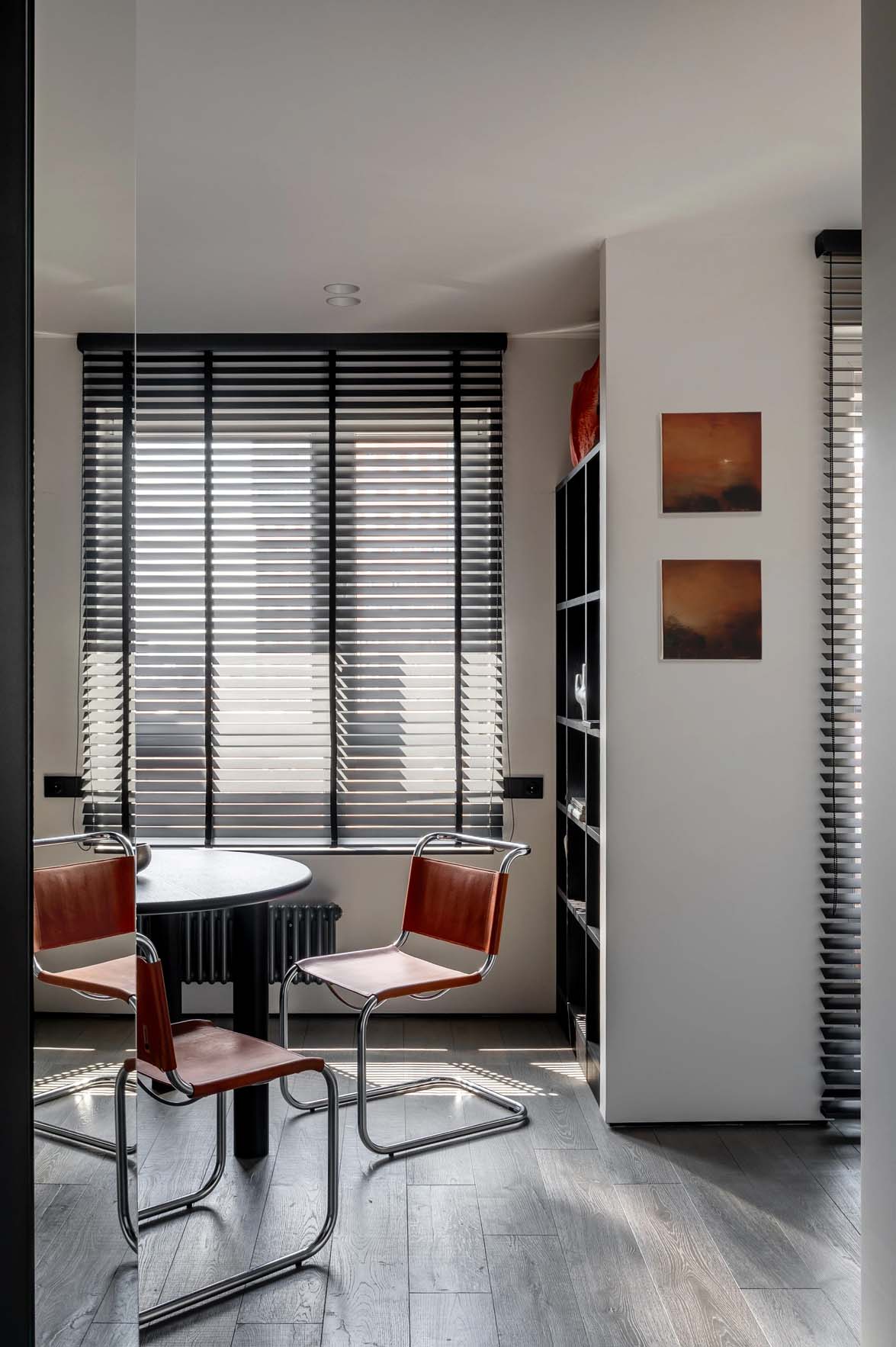 A legfőbb kihívás az volt, hogy az egyszobás lakást olyan stílusos és funkcionális térré formálják, amely passzol a képregénygyűjtő tulajdonos személyiségéhez is. Ehhez egy merész tervezői eszközt vetettek be: a falak és bútorok esetében a terek vizuális tagolására, a zónák kijelölésére a fekete színt használták.