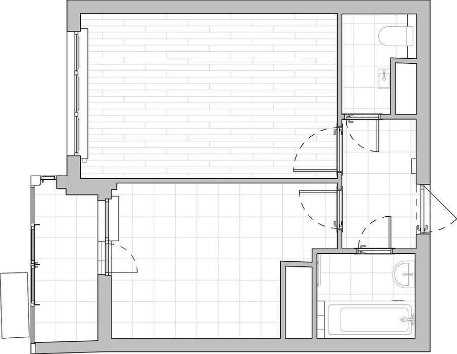 A lakás alapvetően egy standard, beköltözhető állapotú ingatlan volt, ahol az elrendezés kötöttségei és a költségkeret szűkössége miatt a tervező nem a falak mozgatásában, hanem az okos zónázásban kereste a megoldást. Az eredeti alaprajz egy konyhát, egy külön hálószobát, egy fürdőszobát és egy mellékhelyiséget tartalmazott.