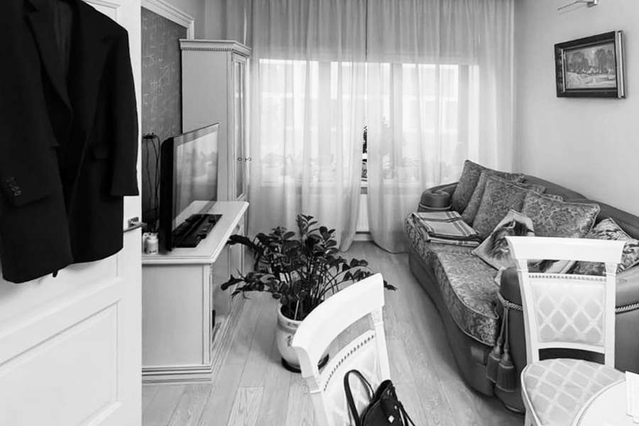 „Az első bejáráskor egy meglehetősen elhasznált belsőt találtam, annak ellenére, hogy egy viszonylag új építésű házról van szó” – emlékszik vissza a lakberendező. „A laminált padló több helyen felpúposodott a nedvességtől, a falakon és a mennyezeten pedig repedések jelentek meg. A bútorzat stílusa nem tükrözte a tulajdonos ízlését, és az egyes darabok sem alkottak egységes egészet.”