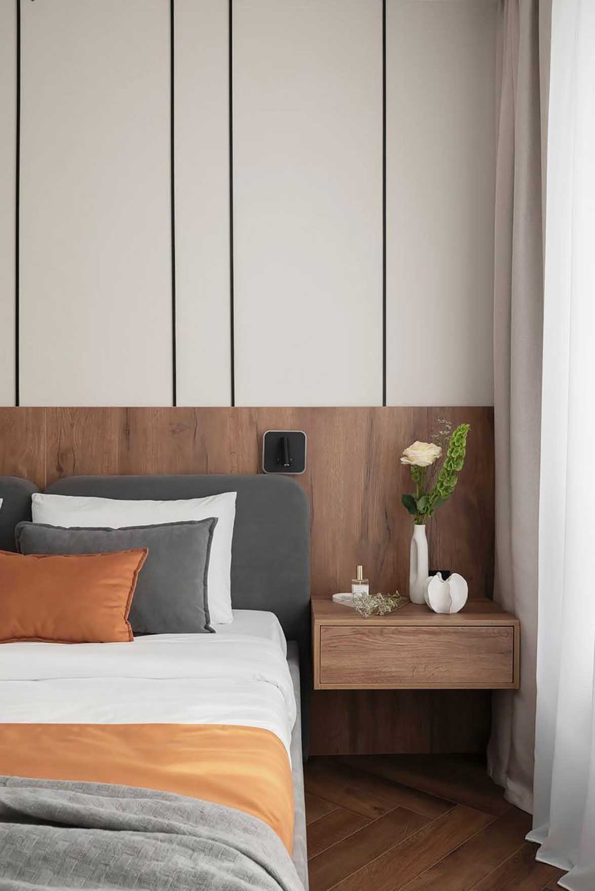 Nézd meg a hálószobai falpaneleket! A függőleges osztások vizuálisan „megnyújtják” a falat, így a mennyezet magasabbnak tűnik. Ez különösen előnyös kisebb alapterületű lakásoknál.