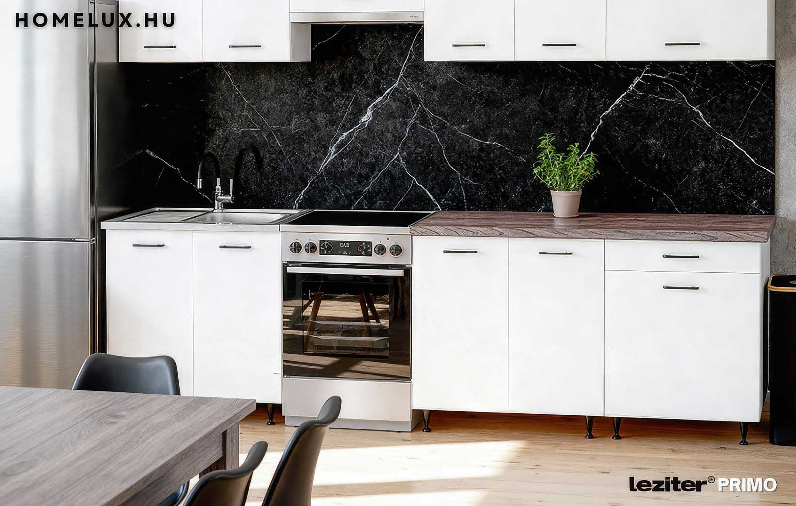 „A legolcsóbb konyhák jellemzően a blokkkonyhák közül kerülnek ki. A Homelux kínálatában a Leziter márka Praktik és a Primo konyhabútorai előre összeállított egységek, fix méretekkel, amelyek kifejezetten jól működnek panellakásokban és kisebb konyhákban. Árban a 180 cm-es konyhák már 69.990 Ft-tól elérhetőek. Ezeknél a konyháknál nincs szükség hosszú tervezési folyamatra, mégis rendezett, modern összhatást adnak.”