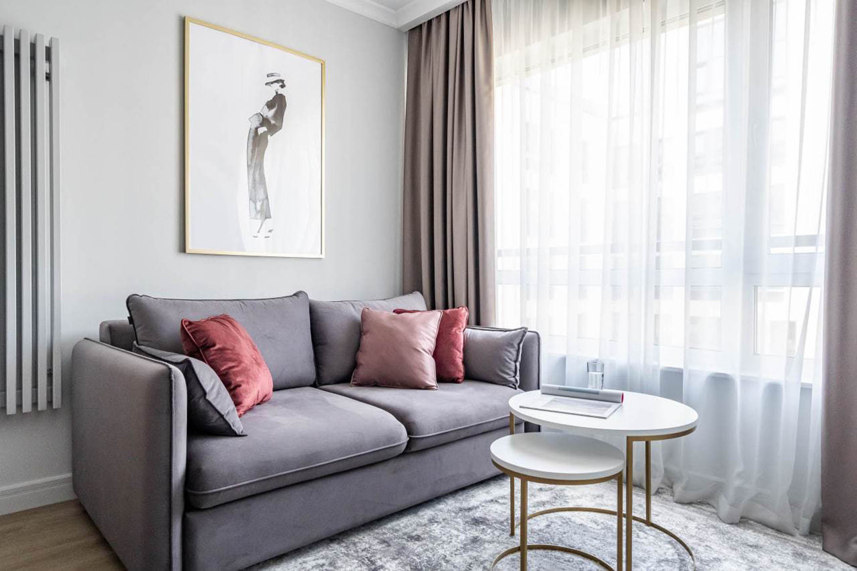 A háromfős családnak berendezett lakásban a lakberendező megmutatja, hogyan lehet egy finom, semleges szürke és pasztell színekre épülő palettával egy kisebb otthont nemcsak stílusossá, hanem tágas hatásúvá és rendezetté is tenni.