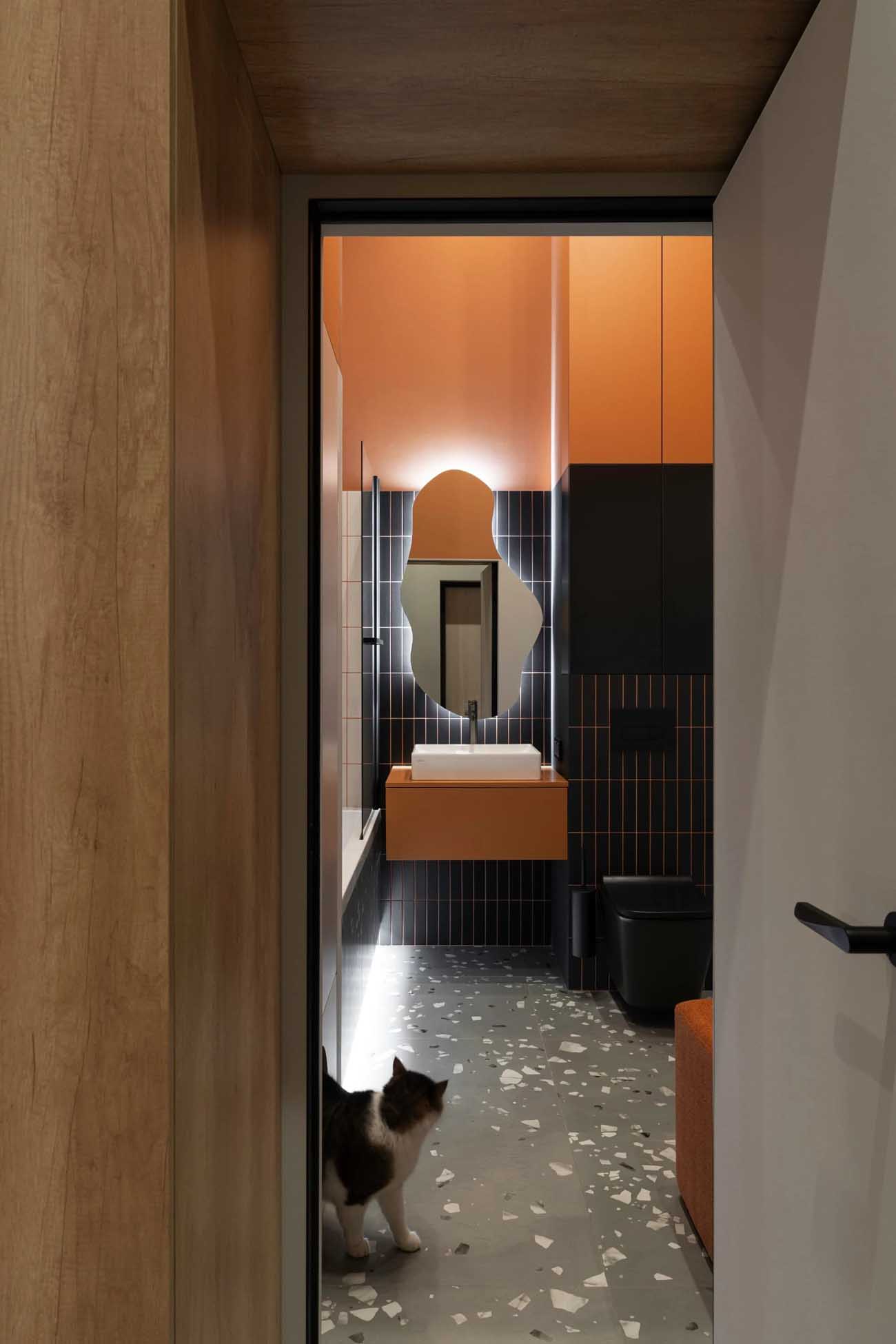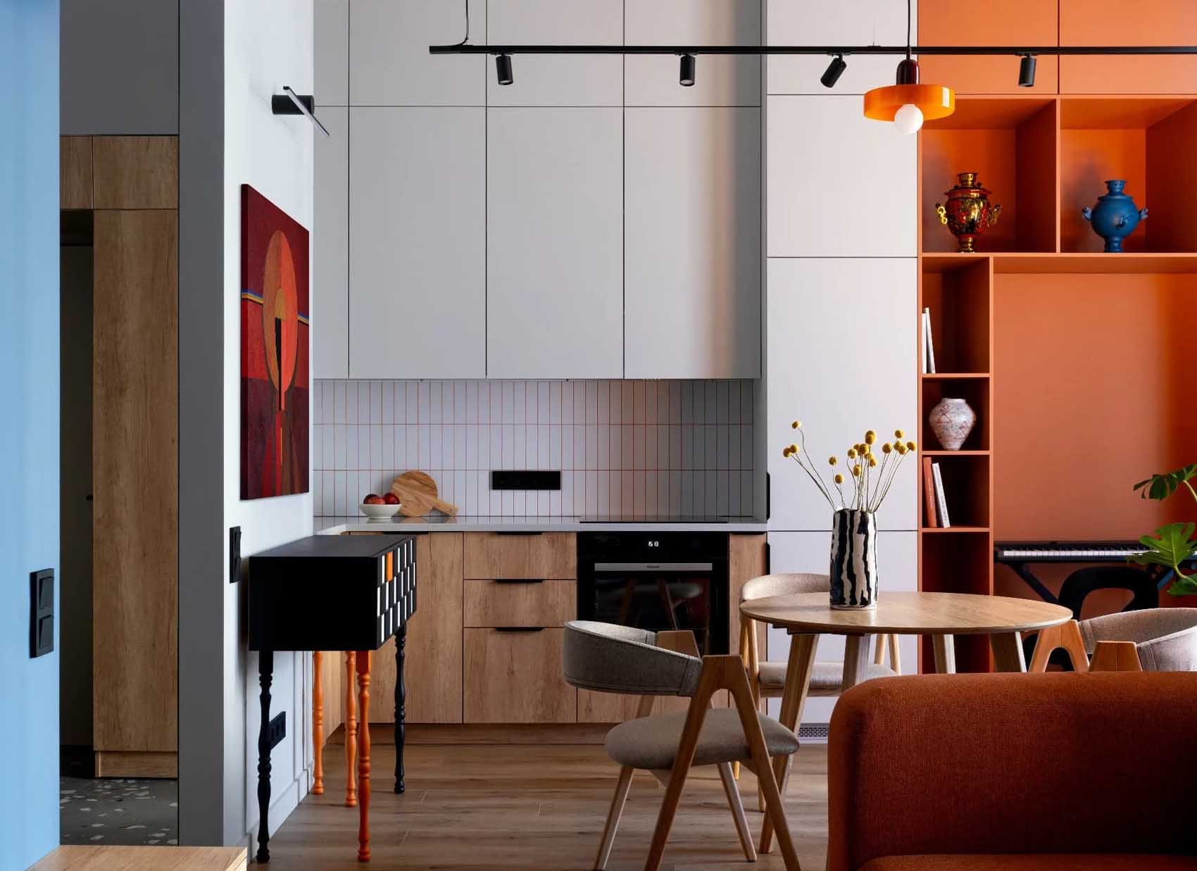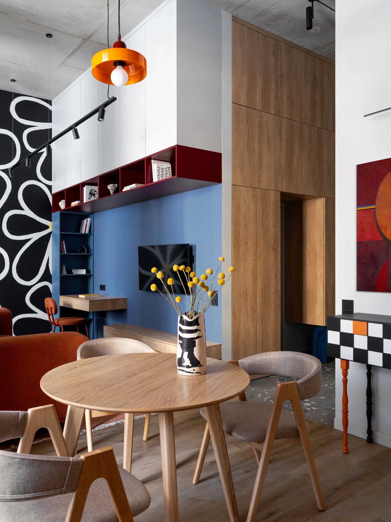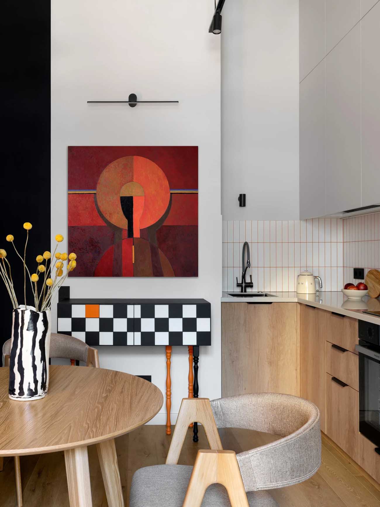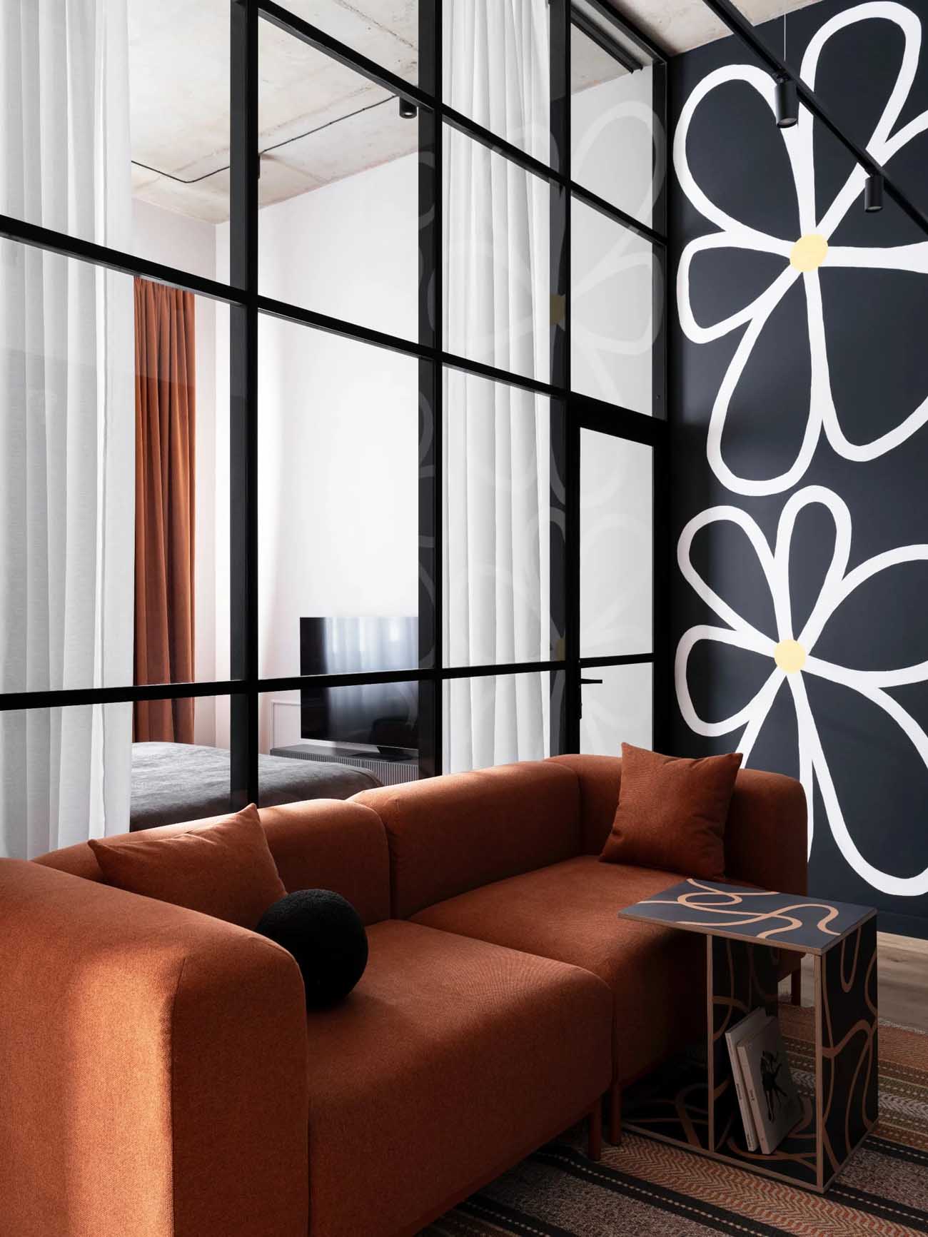 Egy új építésű lakóparkban található ez a 44 négyzetméteres, karakteres lakás, amelyet egy fiatal, kreatív pár számára rendeztek be. A tervező feladata egy olyan élettér kialakítása volt, amely szerény alapterülete ellenére a kényelmes élethez szükséges minden lényeges funkciót biztosít, ugyanakkor merészen ötvözi a kortárs megoldásokat a hagyományőrző motívumokkal.