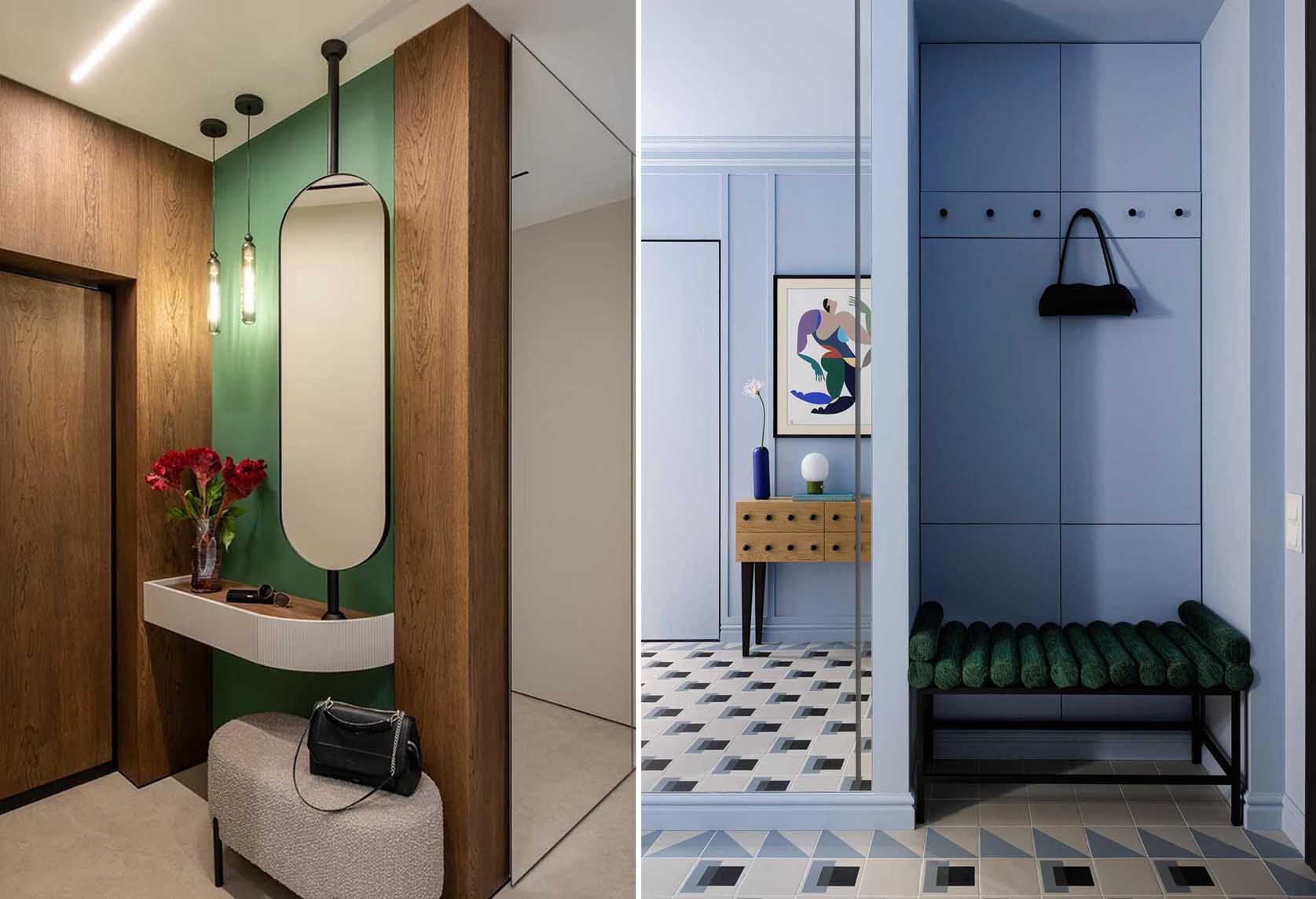 Az előszoba a lakás névjegykártyája – ez az első tér, amely fogad, amikor hazaérkezel, és ez adja az első benyomást a vendégeknek is. Tervezésekor mégis gyakran a praktikum győz az esztétika felett, és a falak megmaradnak a biztonságos, semleges árnyalatoknál. Pedig egy jól megválasztott, markáns színnel, egy különleges burkolattal vagy egy izgalmas tapétával a legszűkebb, ablaktalan belépő is karakteres, stílusos zónává alakítható. Az alábbiakban hét különböző lakás példáján keresztül nézzük meg, hogyan adtak egyedi hangulatot a bejárati térnek a színek tudatos és bátor használatával.